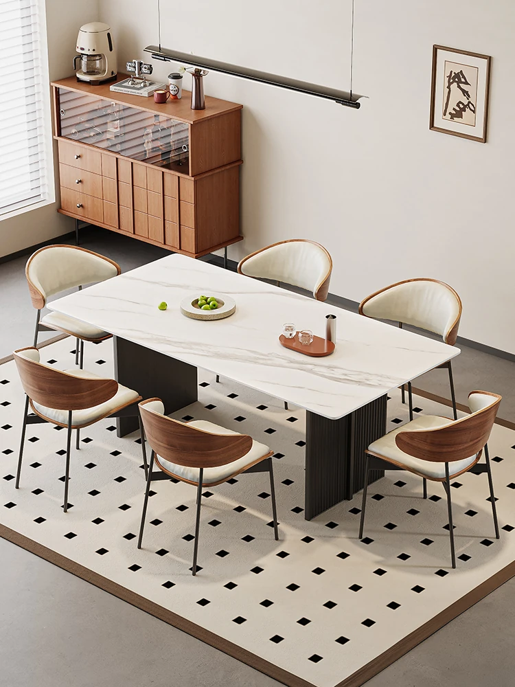 クリーム風の雪山ホワイト岩板ダイニングテーブルとチェアのセット|モダンミニマリスト向けの小型住宅に最適な長方形ダイニングテーブル&椅子組み合わせ!おしゃれで機能的な食卓を演出します。