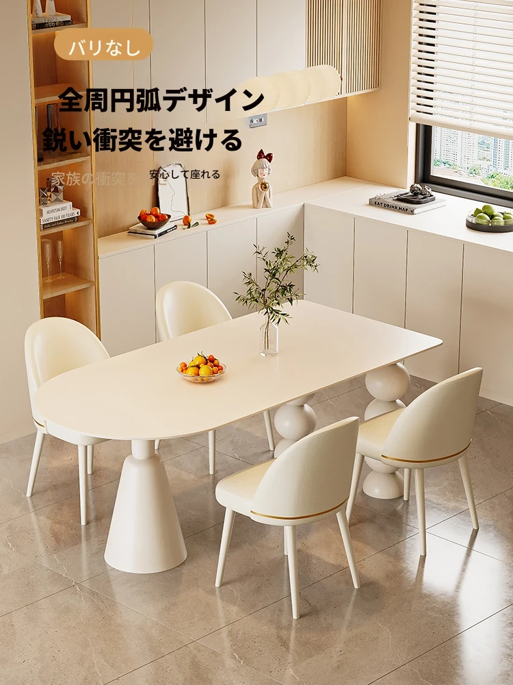 クリーム風の岩板ダイニングテーブル、モダンでシンプルなデザイン。小型住宅にもぴったりな一体型エレガントな楕円形テーブルとチェアのセットで、食事をもっと特別な時間に演出します。