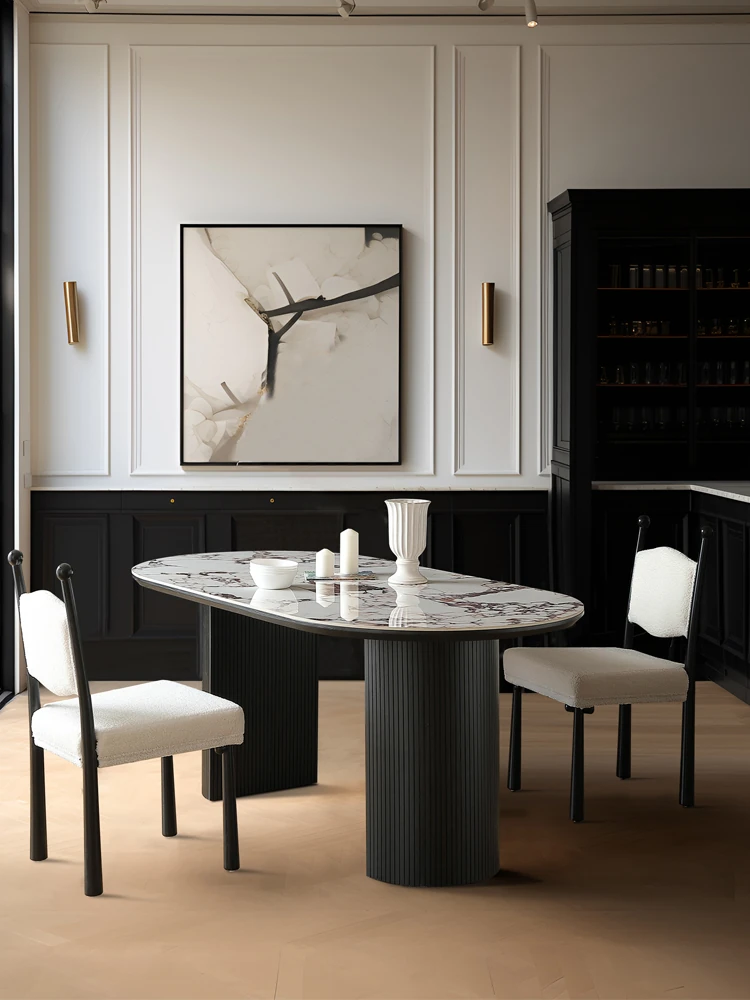 ジノウェイ フランス風シンプルモダン高級ボッテガ・ヴェネタスタイル ダイニングテーブルセット 楕円形テーブルとチェアのコンビネーションで、洗練された空間を演出!
