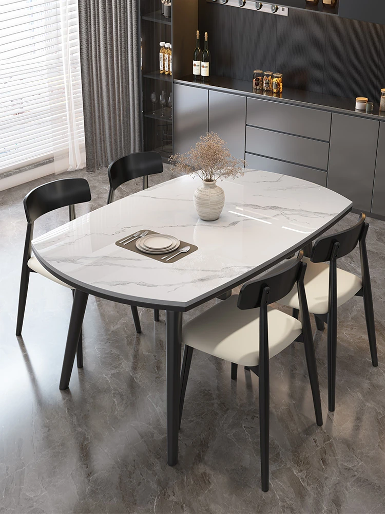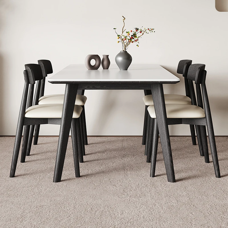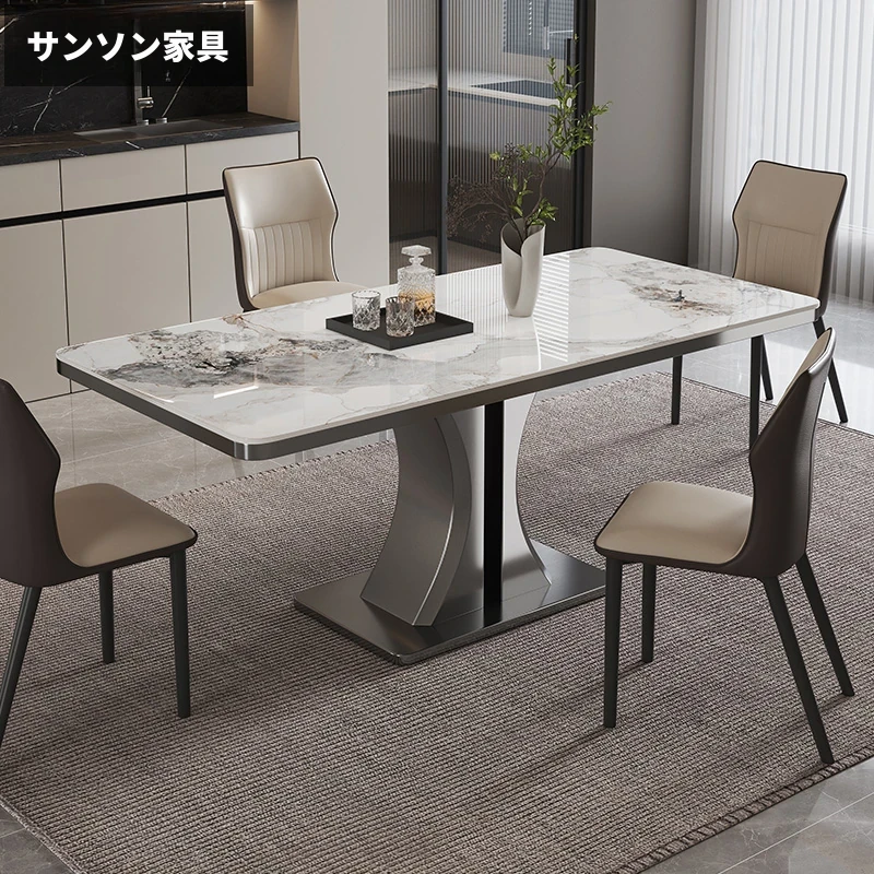 2025年新作!イタリアンミニマリズムの長方形岩板テーブル&チェアセット - モダンでシンプル、ステンレス製の下掛けデザインで小型住宅に最適!