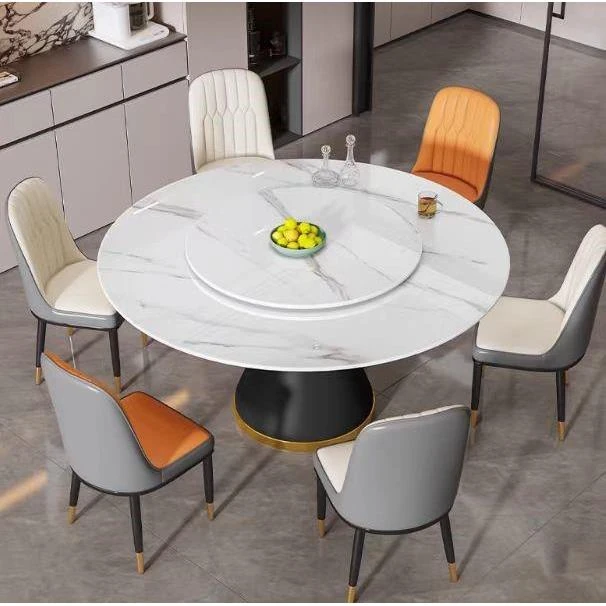 2025年新登場!ラウンド石板ダイニングテーブル - 軽奢華でモダンなデザイン、回転プレート付き!10人用の大理石製、家族や友人との特別な食事に最適です。おしゃれで機能的な食卓を手に入れましょう!