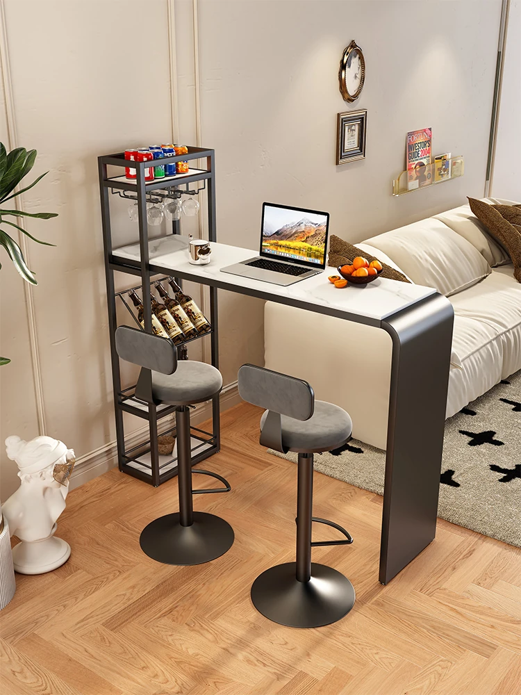シンプルでスタイリッシュな家庭用バースタンドテーブル - 岩板デザインのハイテーブル、リビングやバルコニーにぴったりのミニサイズ・リラックス空間を演出!
