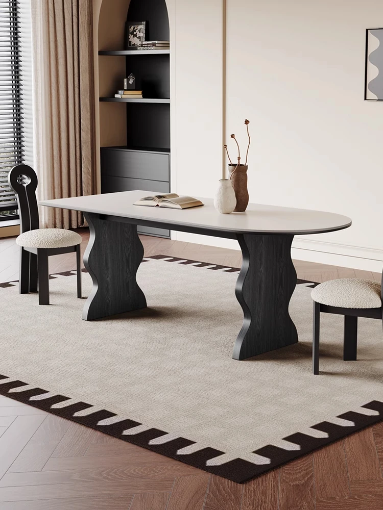 新作!クリーミーな風合いの岩板ダイニングテーブル - 小型住宅に最適、壁付けでスペースを有効活用!おしゃれなリビングアイランドテーブルで、家族や友人との楽しい食事を演出します。