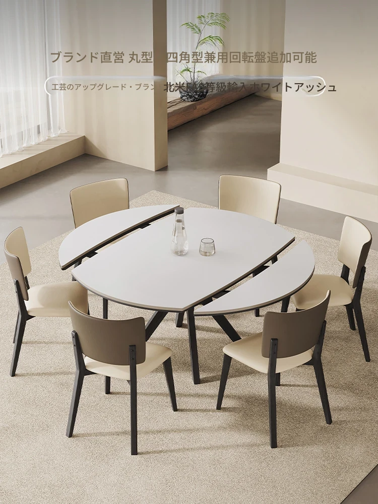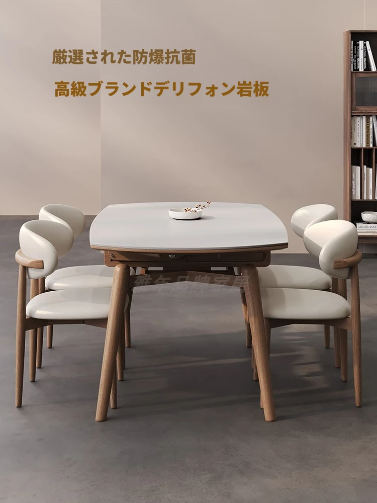 現代的なミニマリストデザイン!岩板製の伸縮可能な折りたたみダイニングテーブル。小型住宅に最適なスクエア&ラウンド両用スタイル。軽やかな高級感で、家族や友人との楽しい食事シーンを演出します!