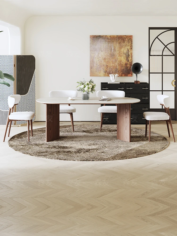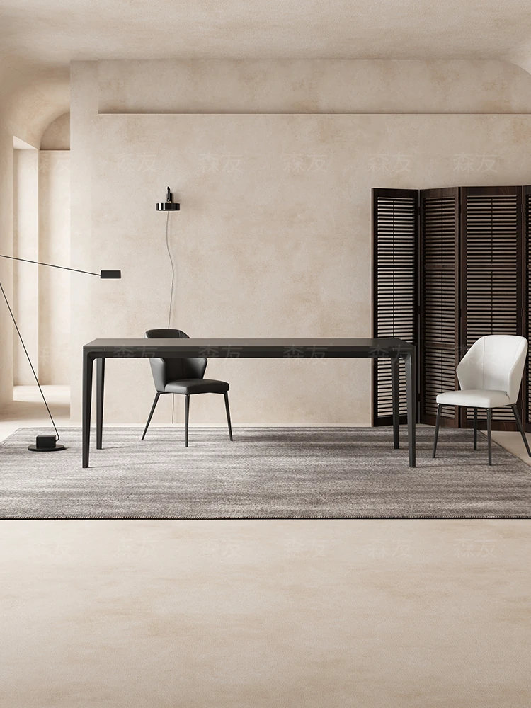 イタリアンスタイルの長方形岩板ダイニングテーブル|全て無垢材使用|4人用の軽奢スタイル|小さなスペースにもぴったりな食卓セット!快適な食事時間を演出します。