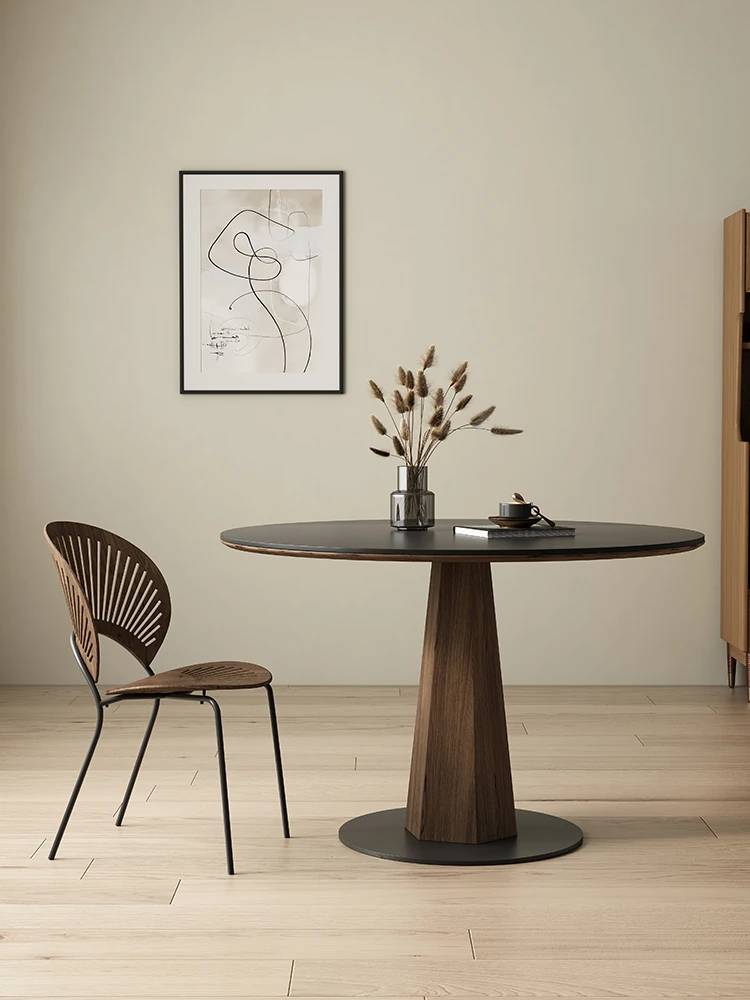 途遠のアンティークスタイル、丸型デリフォン岩板ダイニングテーブル - 天然木製、シンプルでおしゃれな小型ダイニングテーブル。コンパクトな空間にぴったり、食事を楽しく演出します!