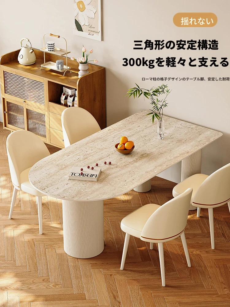 新作!洞石デザインの軽奢モダンなダイニングテーブルセット - 小型住宅にぴったりのフレンチクリーム風テーブル&チェアコンビネーションで、洗練された食空間を演出!