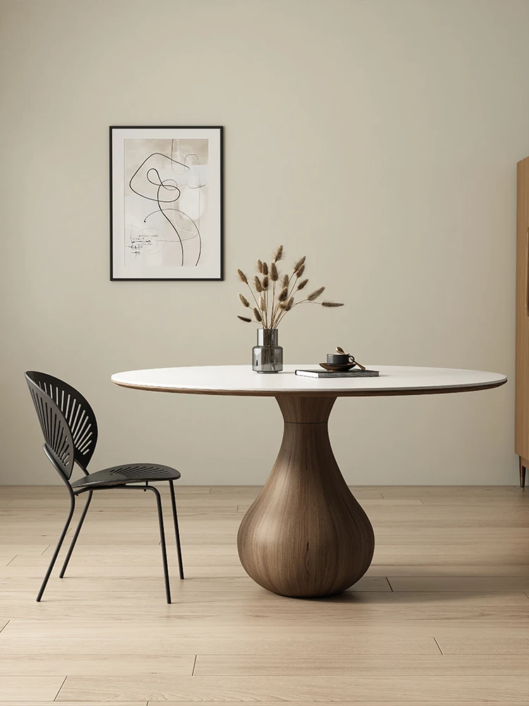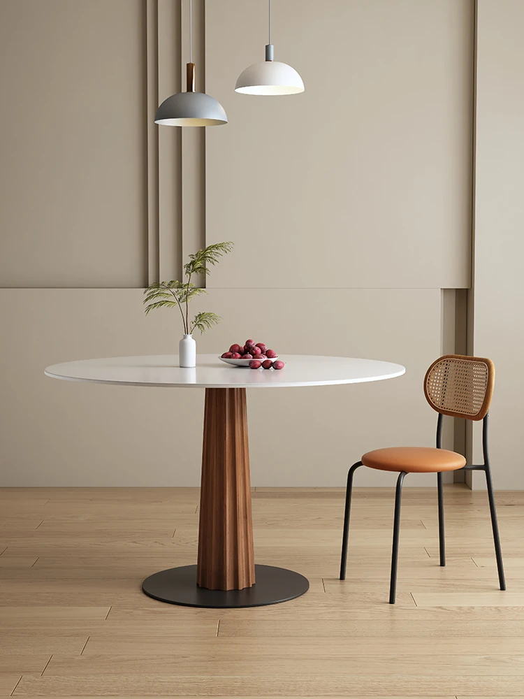デリフォン純白のウォールナット色の無垢材丸型ダイニングテーブル - 小さな部屋に最適なレトロでシンプルなデザイン、洗練された雰囲気で食事を楽しむことができます!