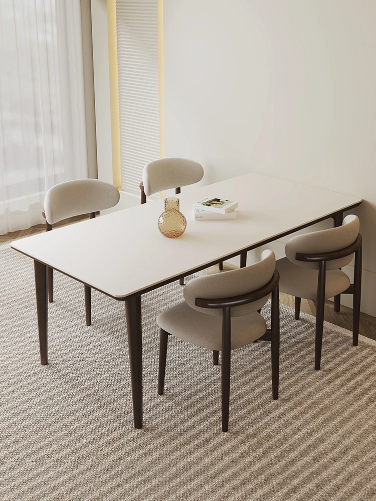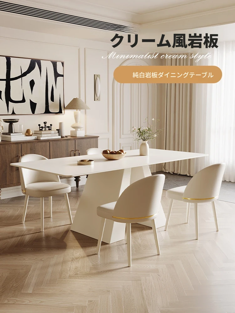 クリーム風の純白岩板ダイニングテーブル - モダンでシンプルなデザイン、軽やかなラグジュアリー。小型住宅に最適な長方形テーブル&チェアセット、2024年新作登場!