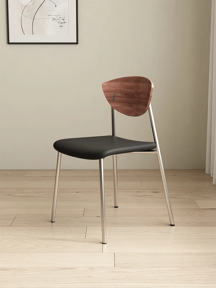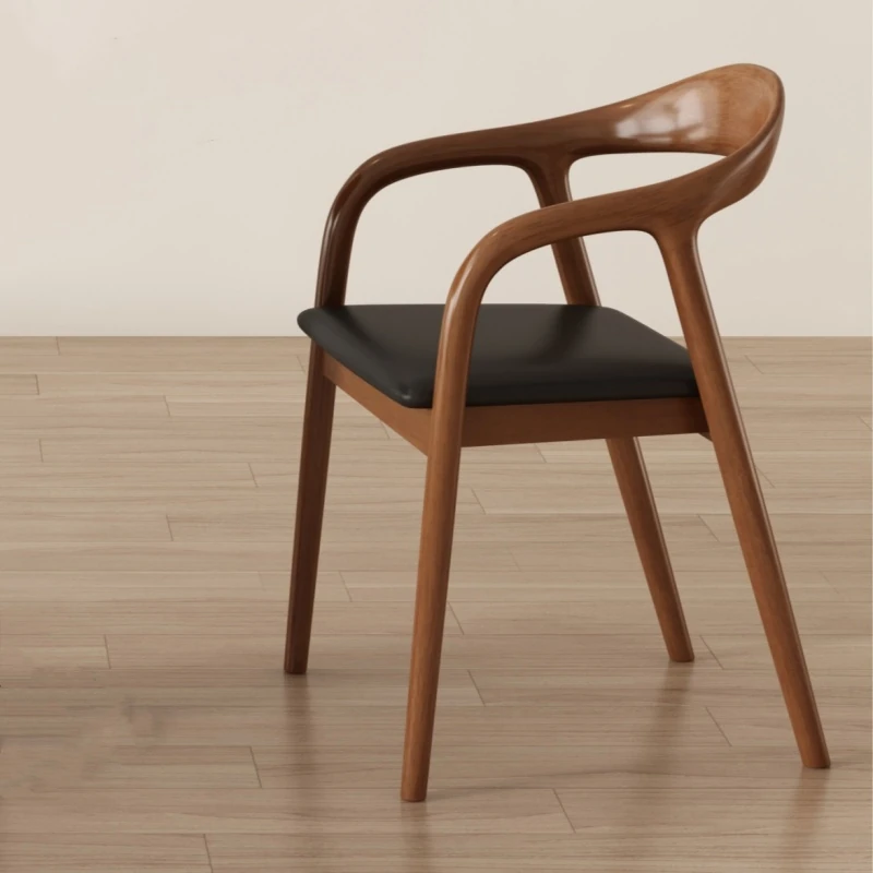 現代北欧デザインの無垢材ダイニングチェア - シンプルな天然木製リラックスコーヒーチェア、家庭用背もたれ付き椅子、上質な合成皮革使用!スタイリッシュな空間を演出し、快適なひとときを提供します。