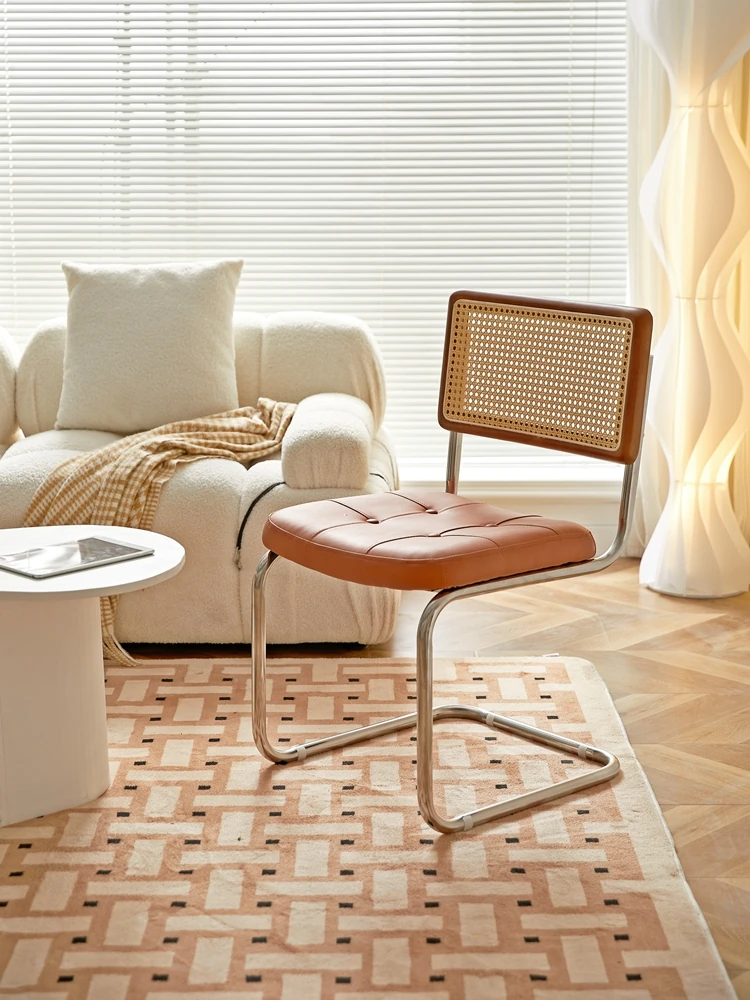 本革製イタリアン軽奢華モダン家庭用ダイニングチェア・ビジネスミーティング用・北欧シンプルデザイン・高品質トップレザー使用のダイニングチェア