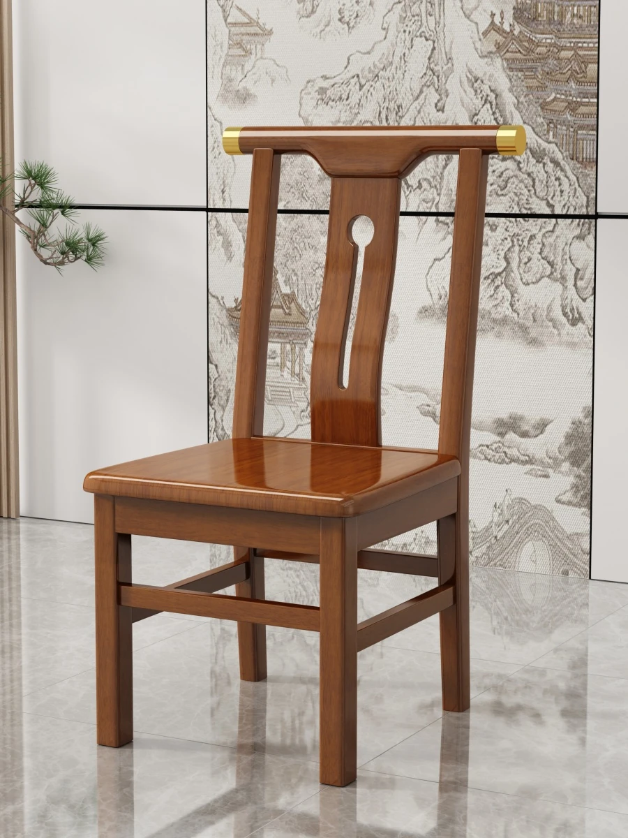 現代中式無需組立の実木ダイニングチェア - 榫卯構造採用、快適な背もたれ付き!家庭やレストランに最適なスタイリッシュな椅子で、食事時をより豊かに演出します。