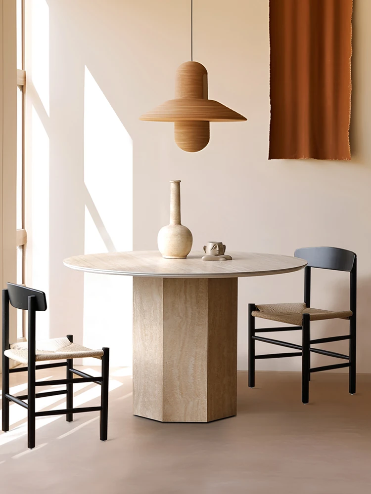Genoway Wabi-Sabi Style Designer Round Table - High-End Marble Dining Table with Unique Stone Surface for Small Spaces