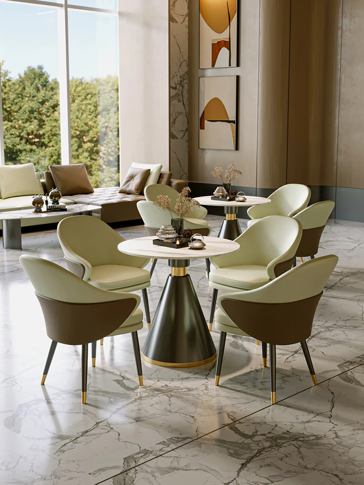 Modern Minimalist Restaurant Rock Plate Leisure Chairs - Perfect for Sales Offices, Reception Areas, Discussion Spaces, and Cozy Meeting Rooms with Small Round Tables.