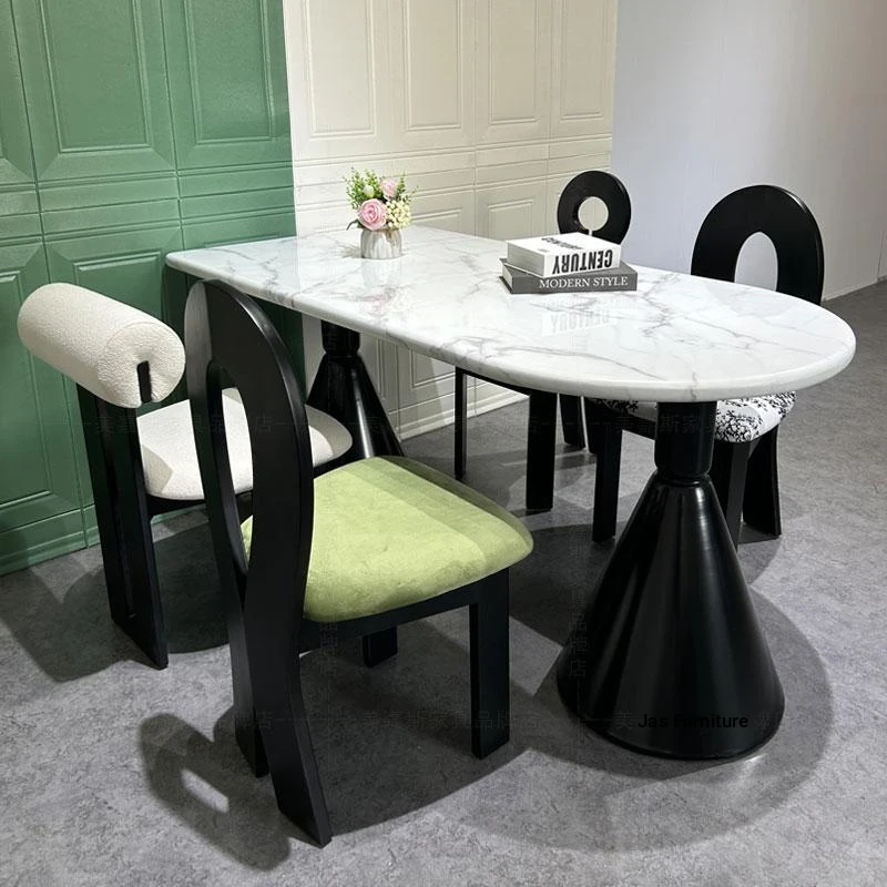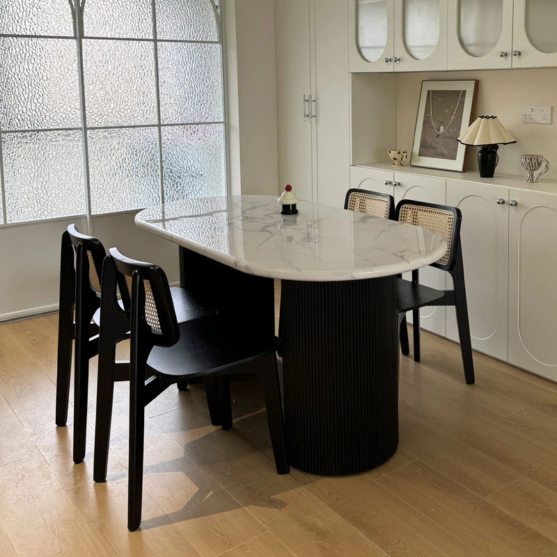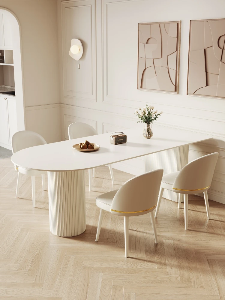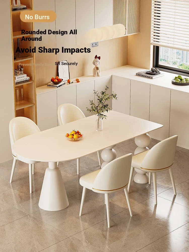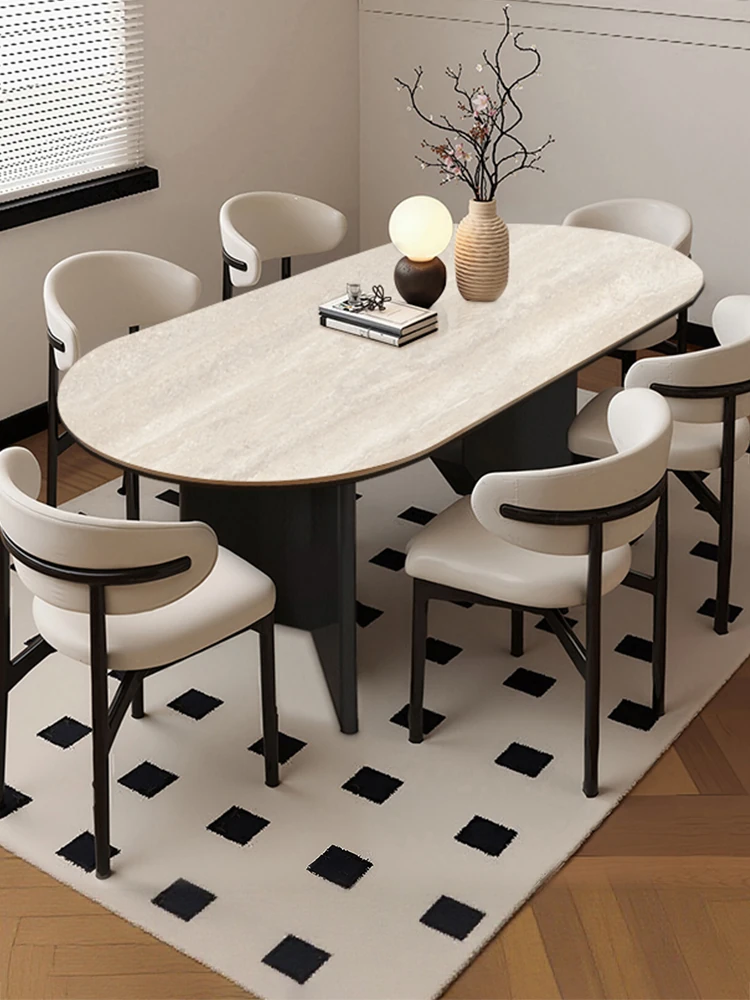 Modern Minimalist Cream-Style Oval Dining Table Set for Small Spaces - Elegant Stone Dining Table with Chairs, Perfect for Cozy Homes