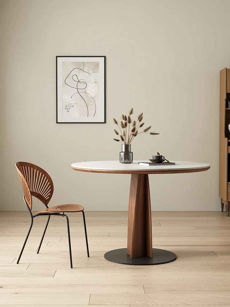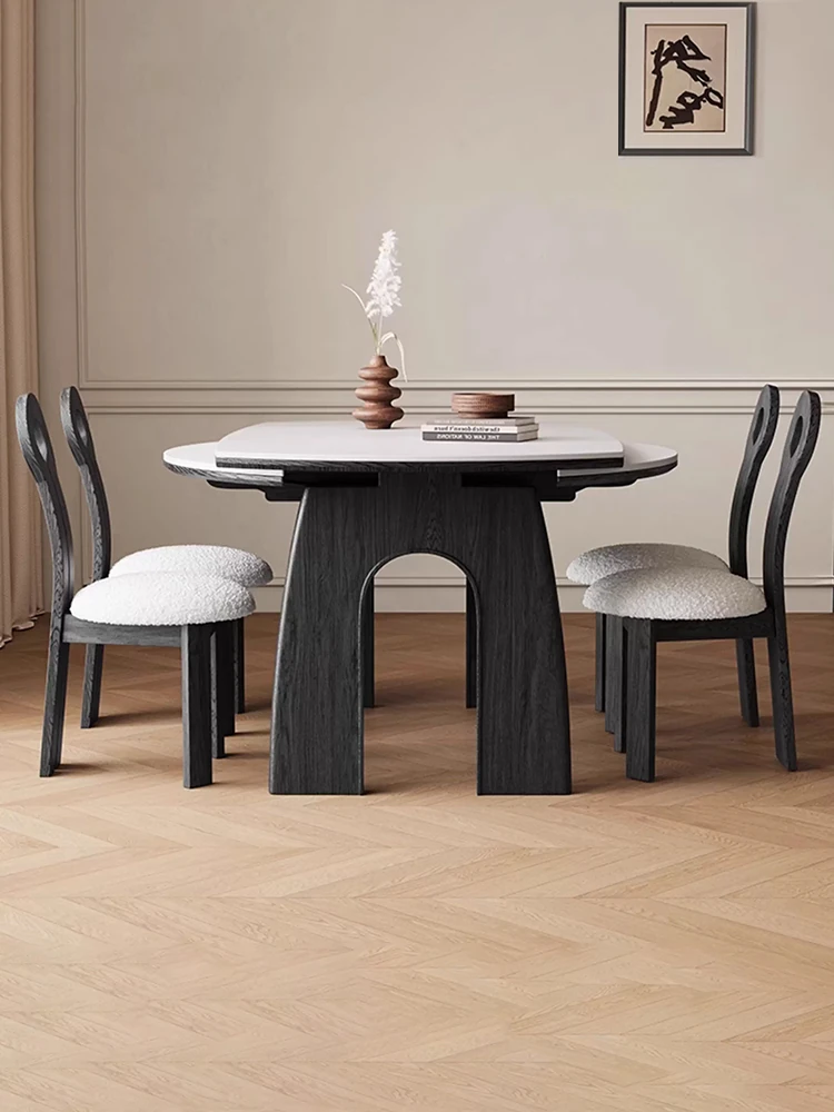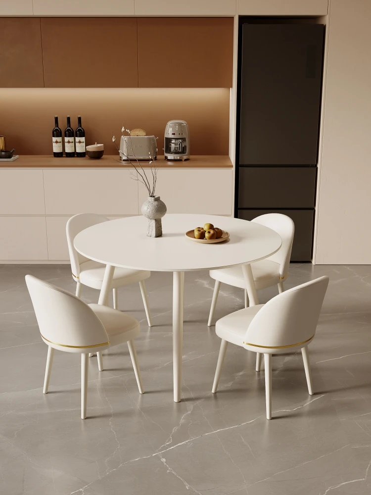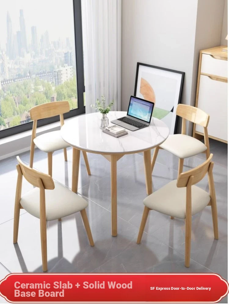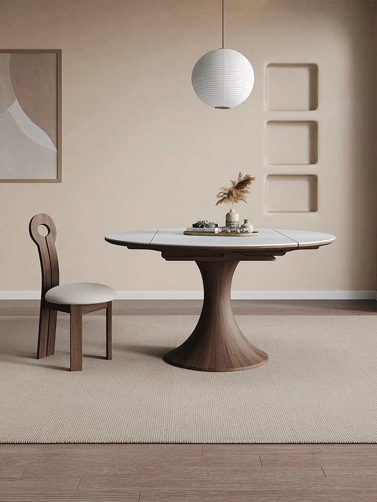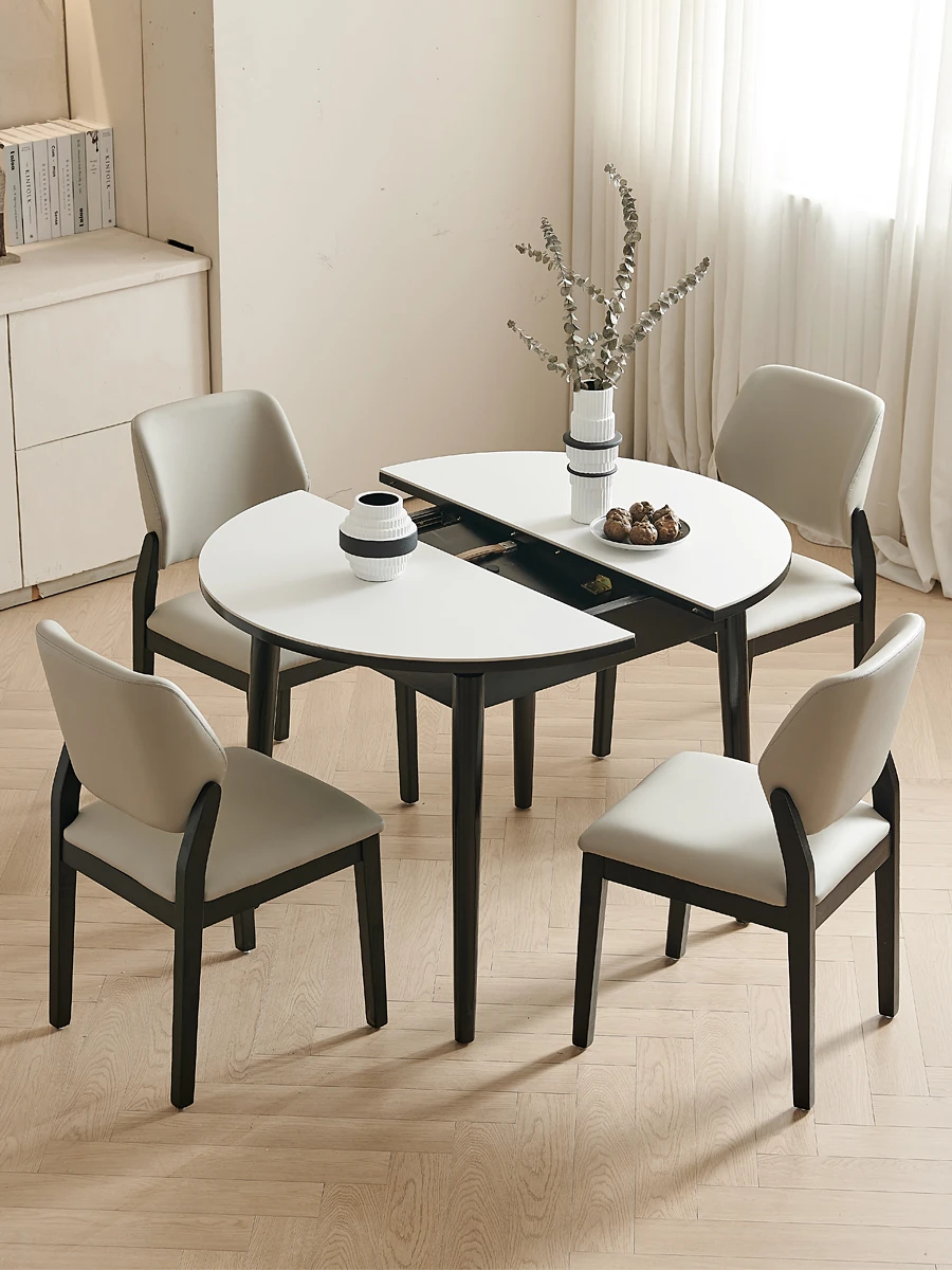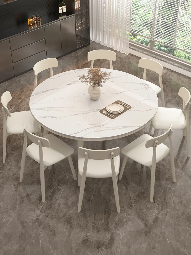 Creamy Wooden Rock Plate Dining Table - Versatile Round/Square Expandable Design for Small Spaces, Modern Minimalist Style with a Touch of Luxury, Perfect for Home Use