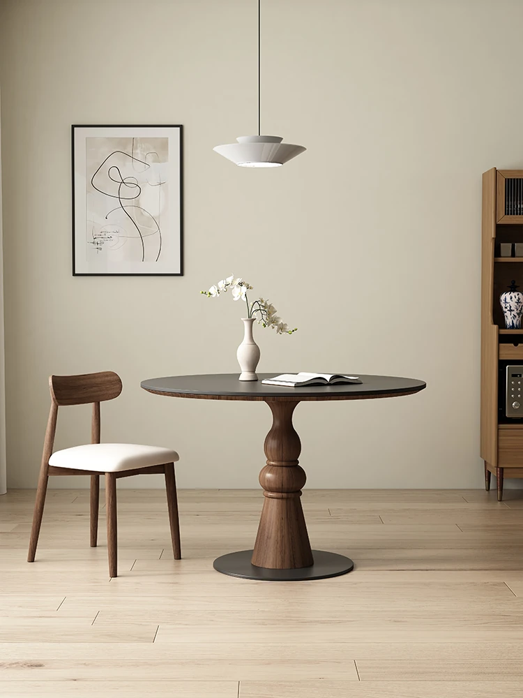 Vintage French Solid Wood Dining Table and Chairs - 2024 New Black Slate Furniture, Creamy American Mid-Century Style Dining Set for Elegant Meals