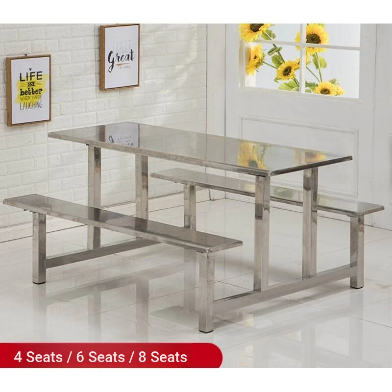 Stainless Steel Dining Table Set for Schools and Cafeterias - 4 to 6 Person Fast Food Table and Chair Combination for Employees and Students