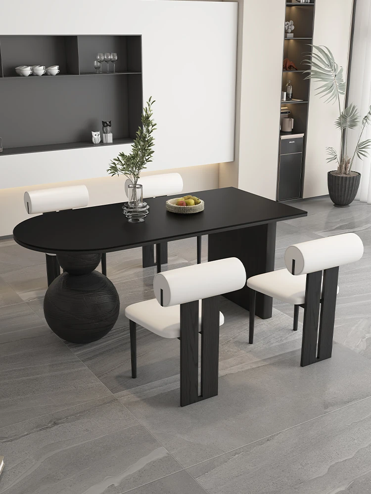 Modern Minimalist French Style Black Rectangular Dining Table Set with Chairs for Small Spaces - Creamy Aesthetic Dining Table for Cozy Meals