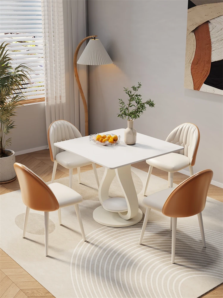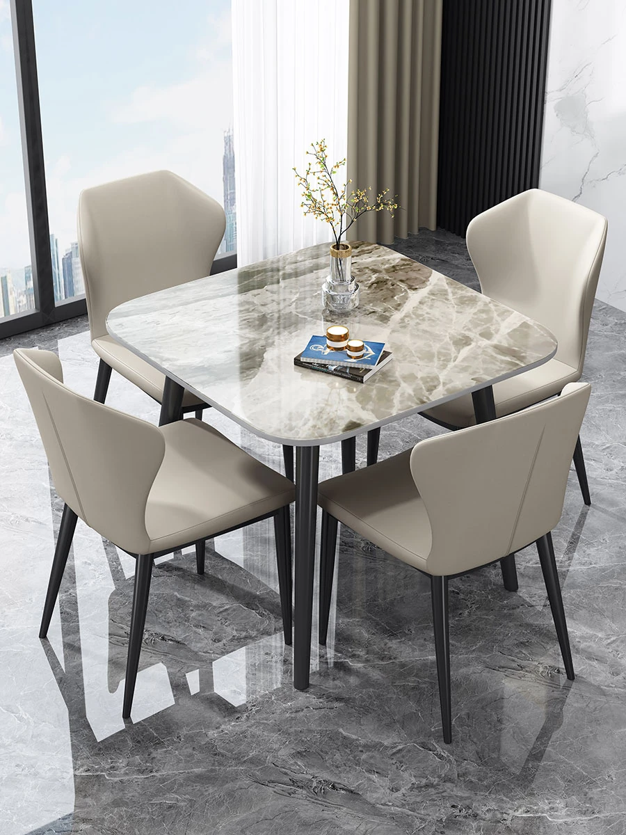 Modern Minimalist Square Marble Dining Table Set for Small Spaces - Perfect for Home, Balcony, and Reception Areas