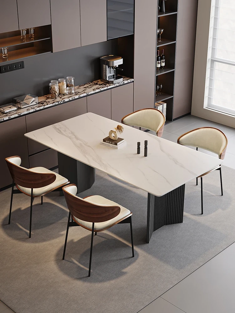 Modern Minimalist Creamy Snow Mountain White Slate Dining Table and Chair Set for Small Spaces - Perfect for Home Use, Rectangle Design