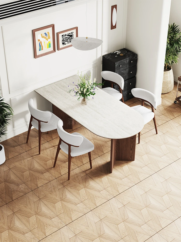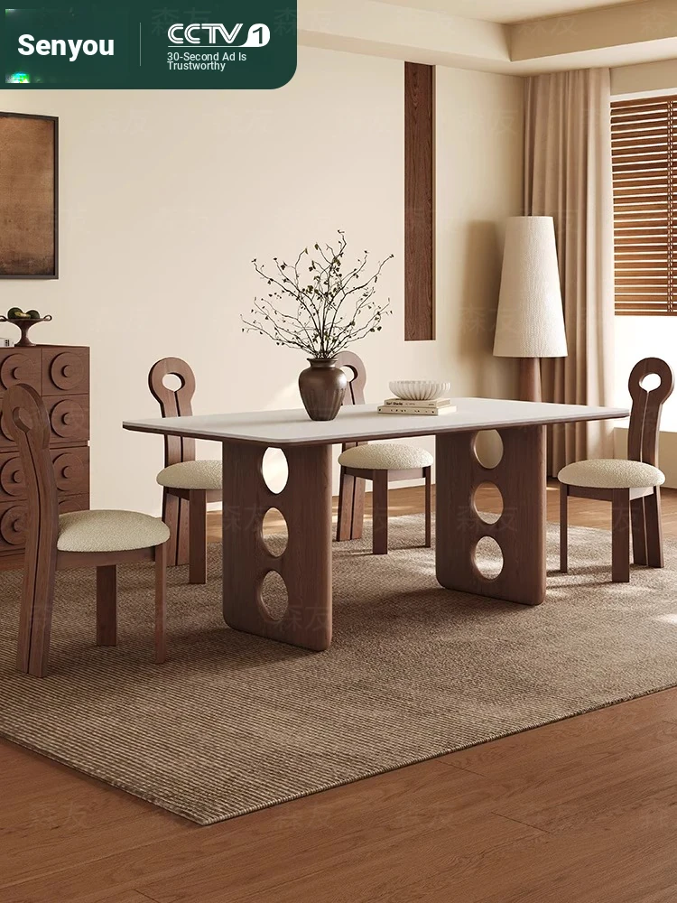 Senyour Imported White Ash and Black Walnut Solid Wood Dining Table Set - Minimalist Rock Slate Design for Home Use, Perfect for Stylish Dining Spaces.