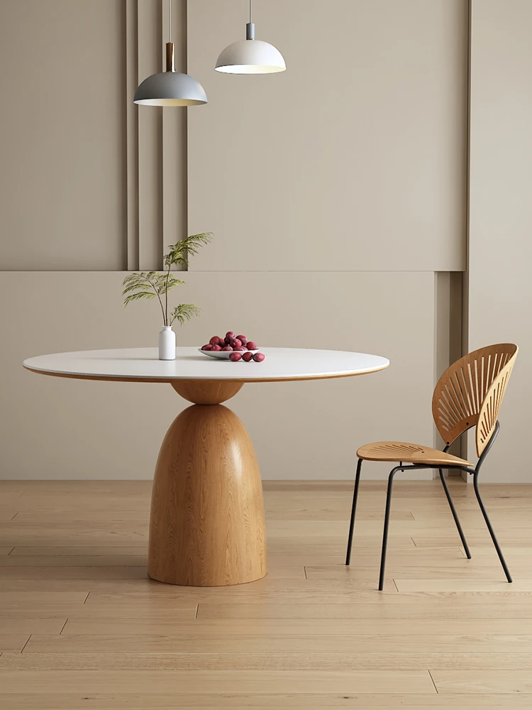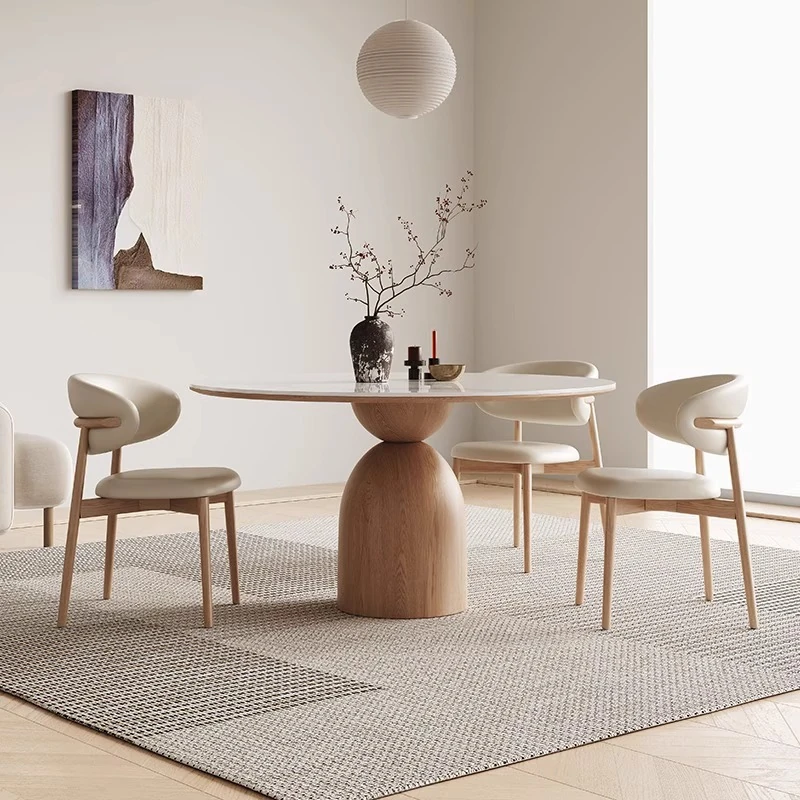 Elegant Modern Round Dining Table - Solid Wood with Pure White Stone Top, Perfect for Small Spaces, Ideal for Contemporary Dining Rooms and Cozy Homes