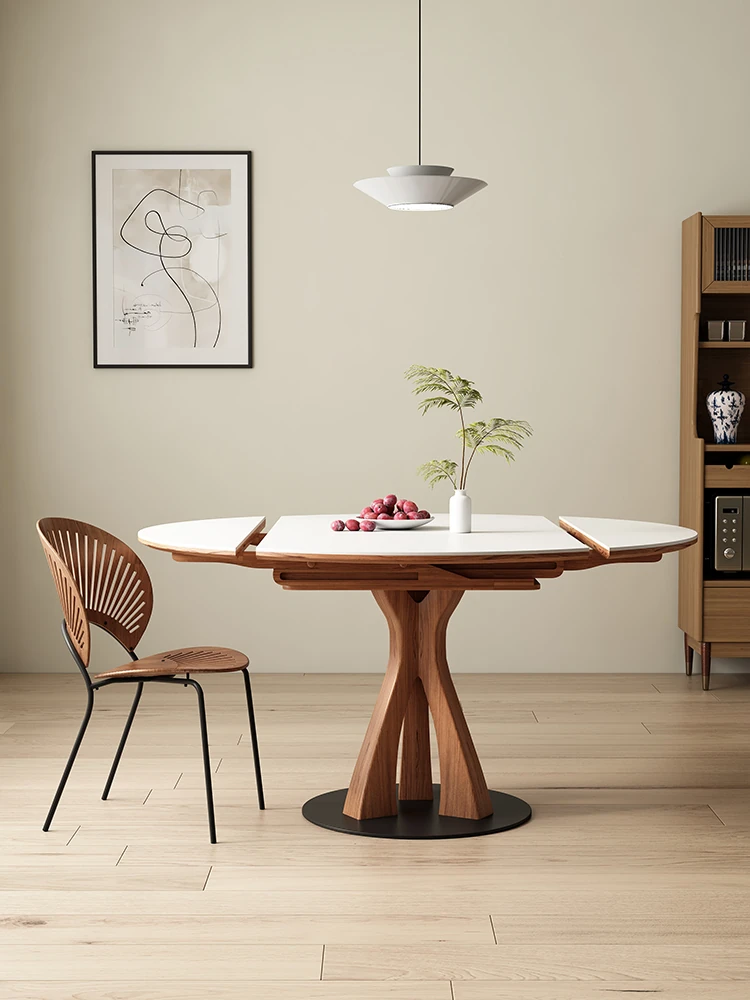 Modern Minimalist Solid Wood Dining Table - Foldable & Expandable, Perfect for Small Spaces, Versatile Round/Square Design for Home Use