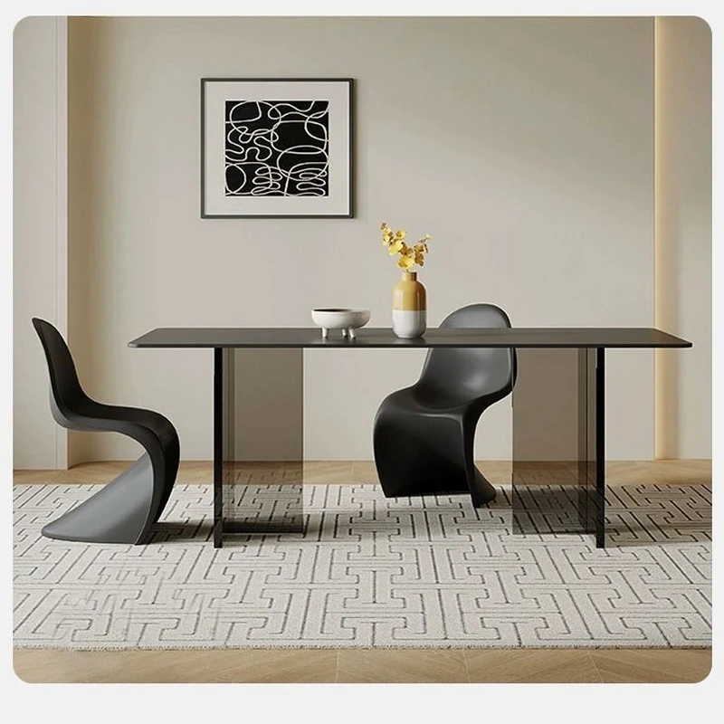 Acrylic Floating Rock Dining Table - Designer Creative Minimalist Transparent Rectangular Island Table and Chair Set for Home Use