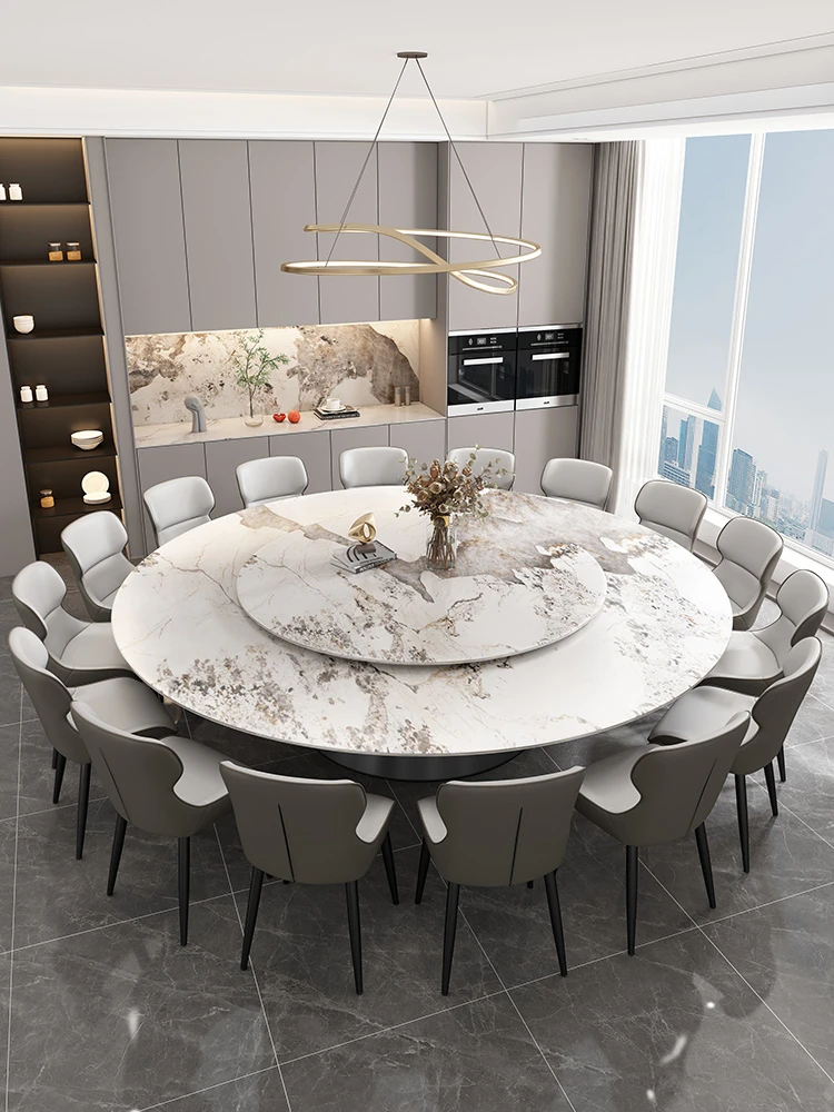 2025 New Luxury Round Marble Dining Table with Rotating Tray - Modern Minimalist Design for 10 People, Perfect for Home Use