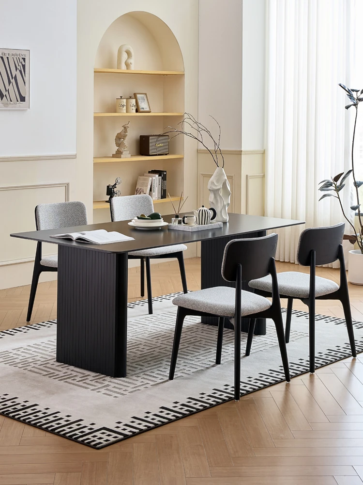 2025 New Italian Minimalist Rectangular Rock Plate Dining Table & Chairs Set - Modern Simple Design with Under-Mount Stainless Steel, Perfect for Small Spaces and Home Use