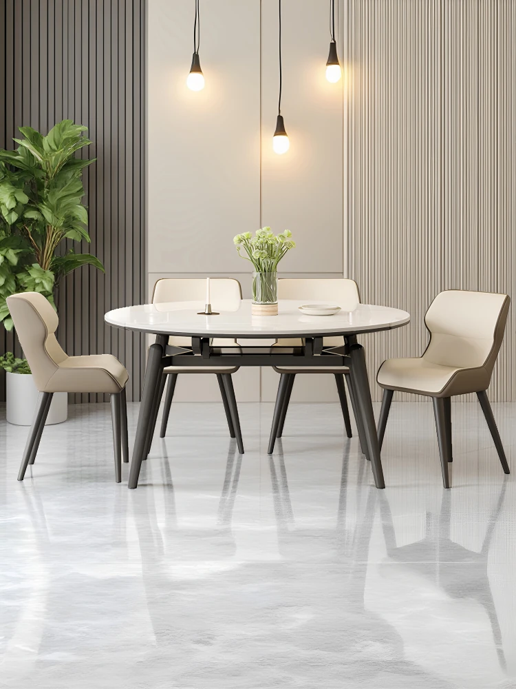 French Creamy Rock Plate Dining Table and Chair Set - Luxurious Modern Minimalist Half-Round Dining Table for Small Spaces, Perfect for Home Use