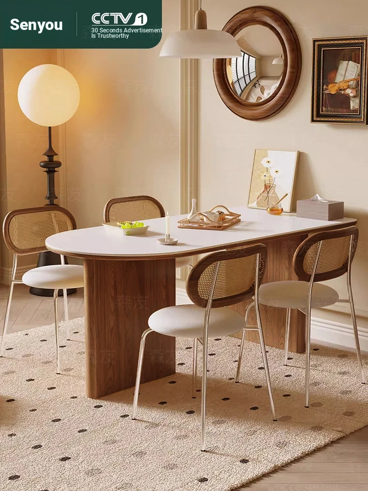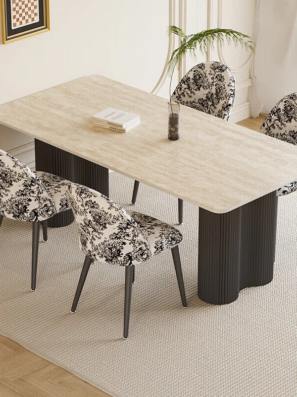 Creamy Wood Rock Slab Dining Table and Chair Set for Small Spaces - Stylish French Oval Dining Table for Living Room - Perfect for Home Use, New Arrival