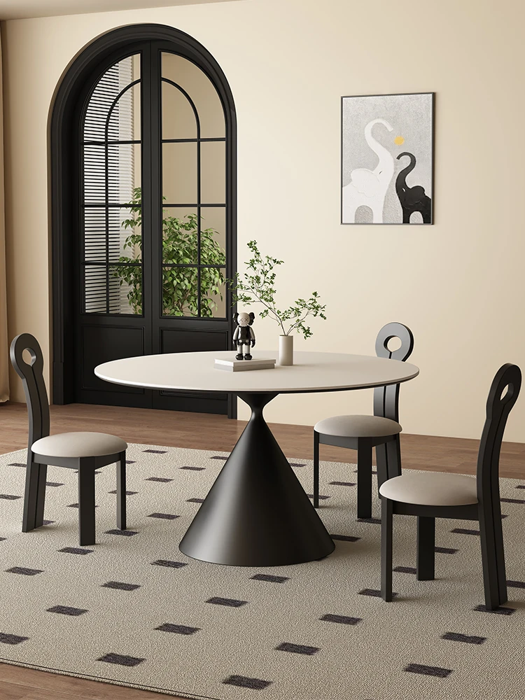 Pure Black Slate Round Dining Table - Minimalist Designer Table for Home Restaurants, Perfect for Small Spaces, Delifeng Wabi-Sabi Style Round Table