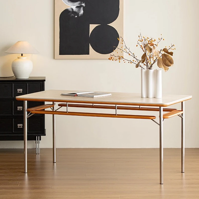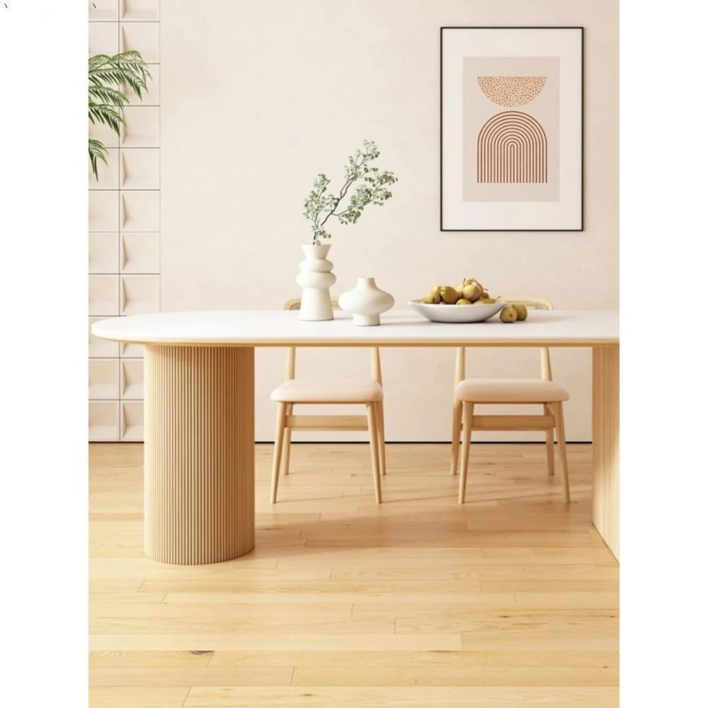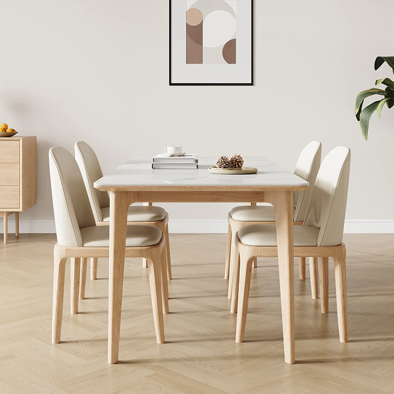 Solid Wood Rock Plate Dining Table - Cream Color, Modern Minimalist Design for Small Spaces, Rectangular Table and Chair Set for Home Use