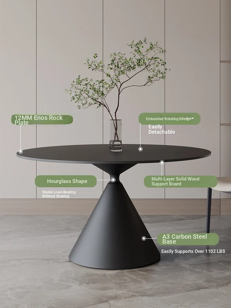 TuYuan DeLiFeng Round Dining Table - Minimalist Design with Square Pedestal, Large Rock Plate Circular Table for Home Dining Room and Living Room Use