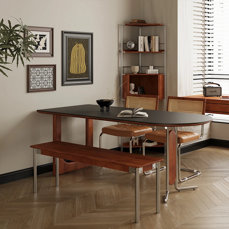 Bauhaus Solid Wood Dining Table and Chair Set - Modern Vintage Design with Stainless Steel for Small Spaces, Perfect for Home Use, Stylish New Dining Table