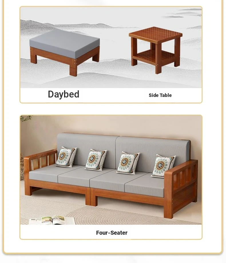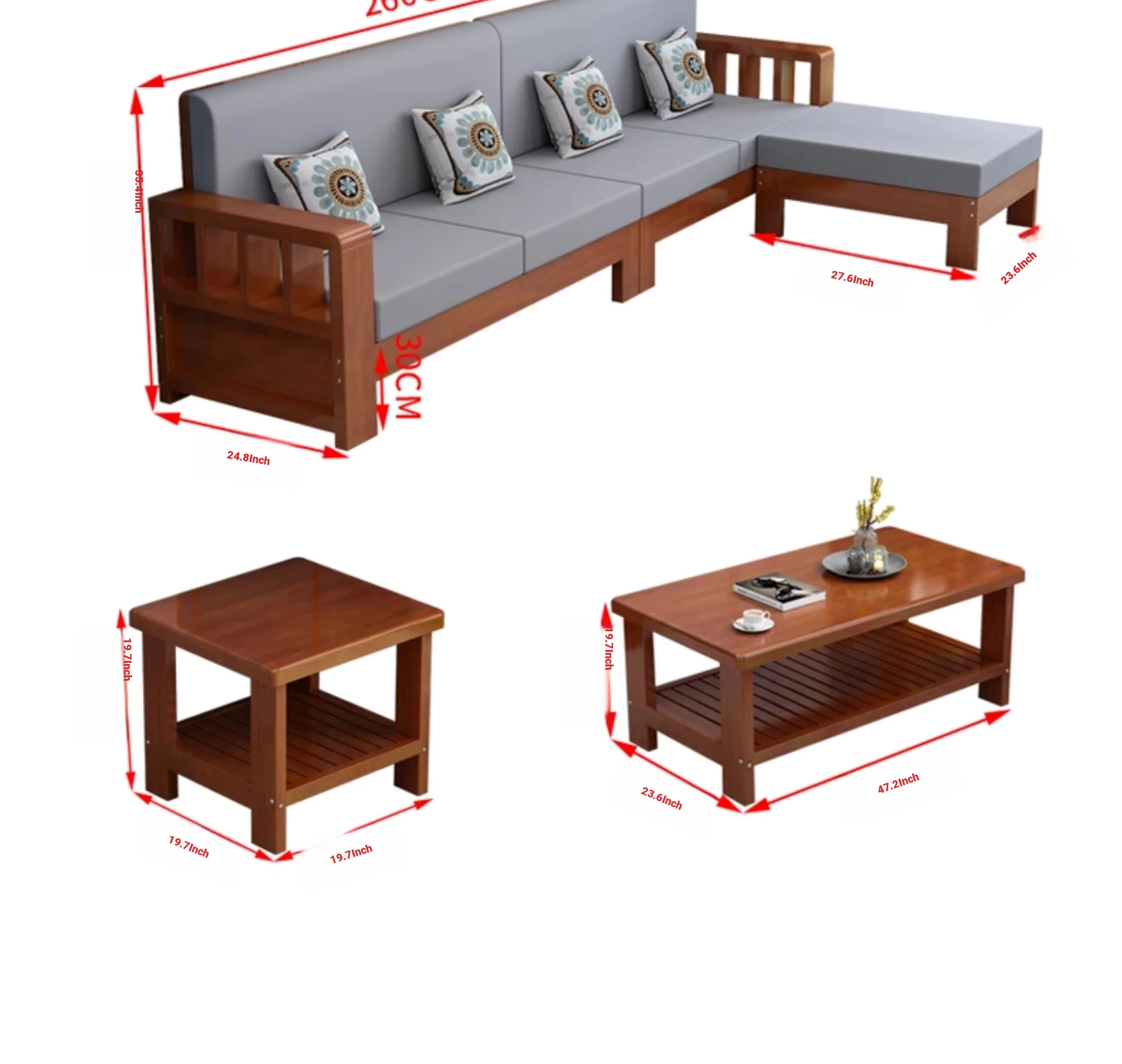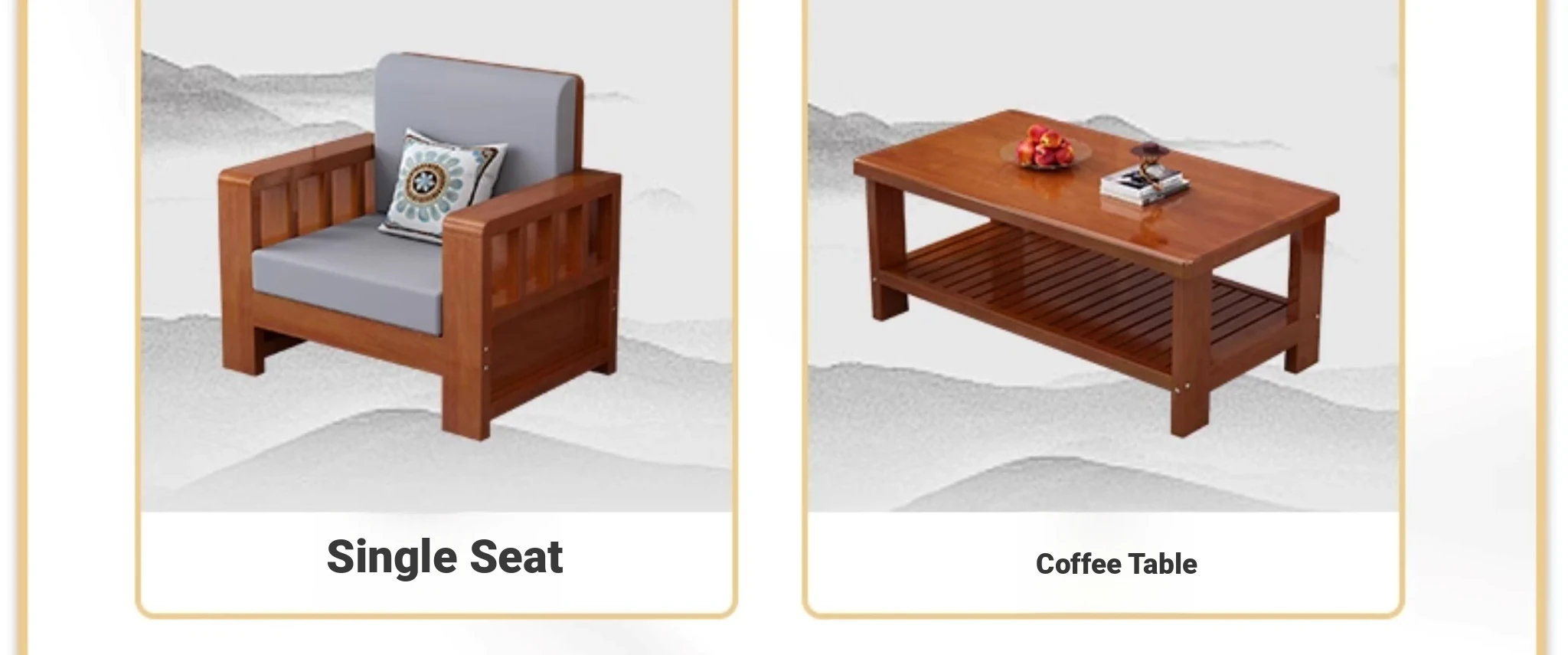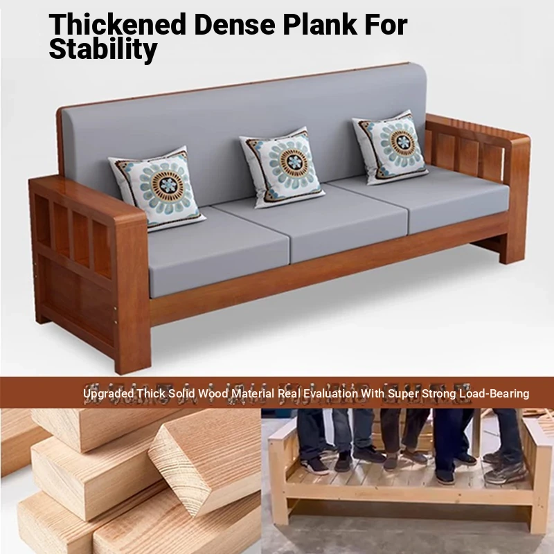 Single + Double + Three + Tea Table [Teak Color] Cushion + Cushion + Pillow (All Solid Wood)