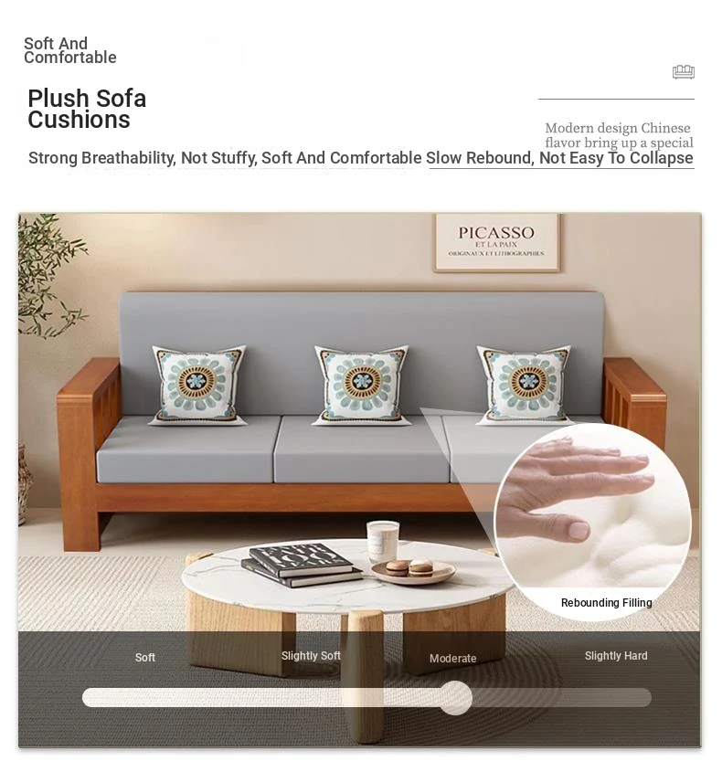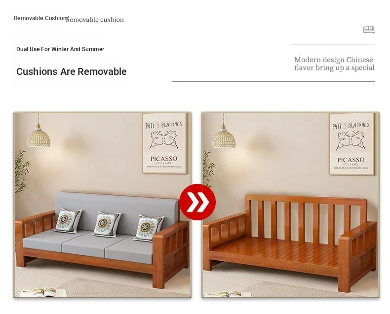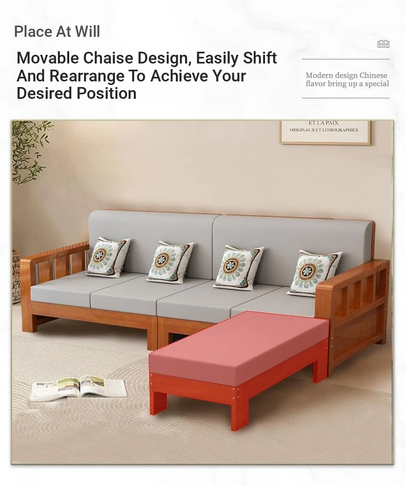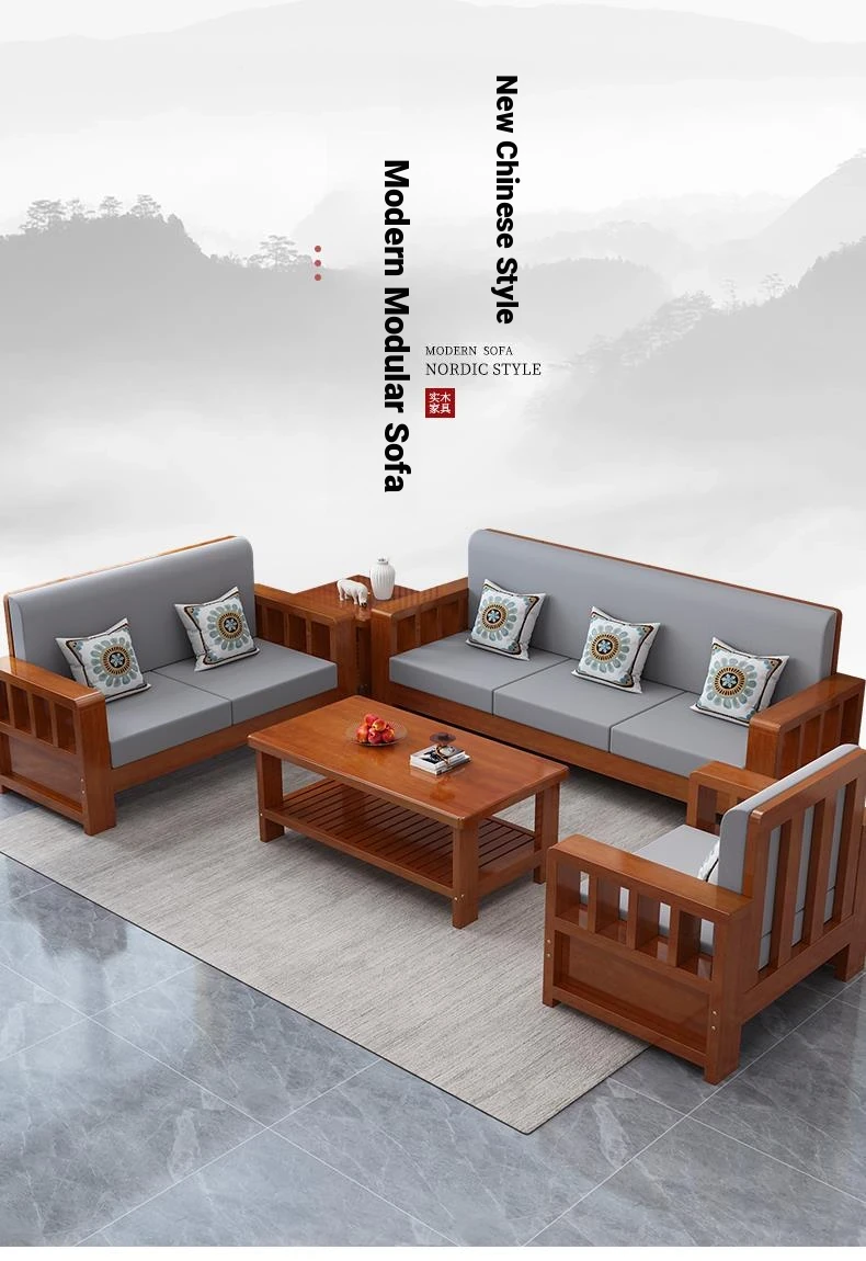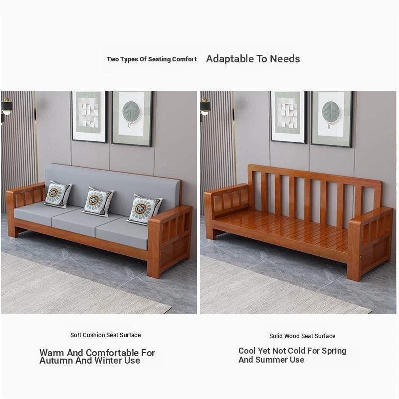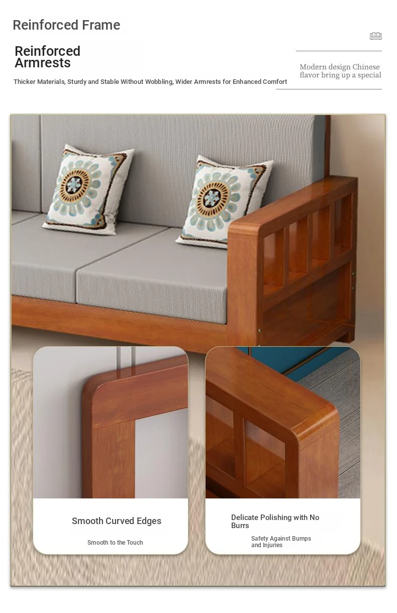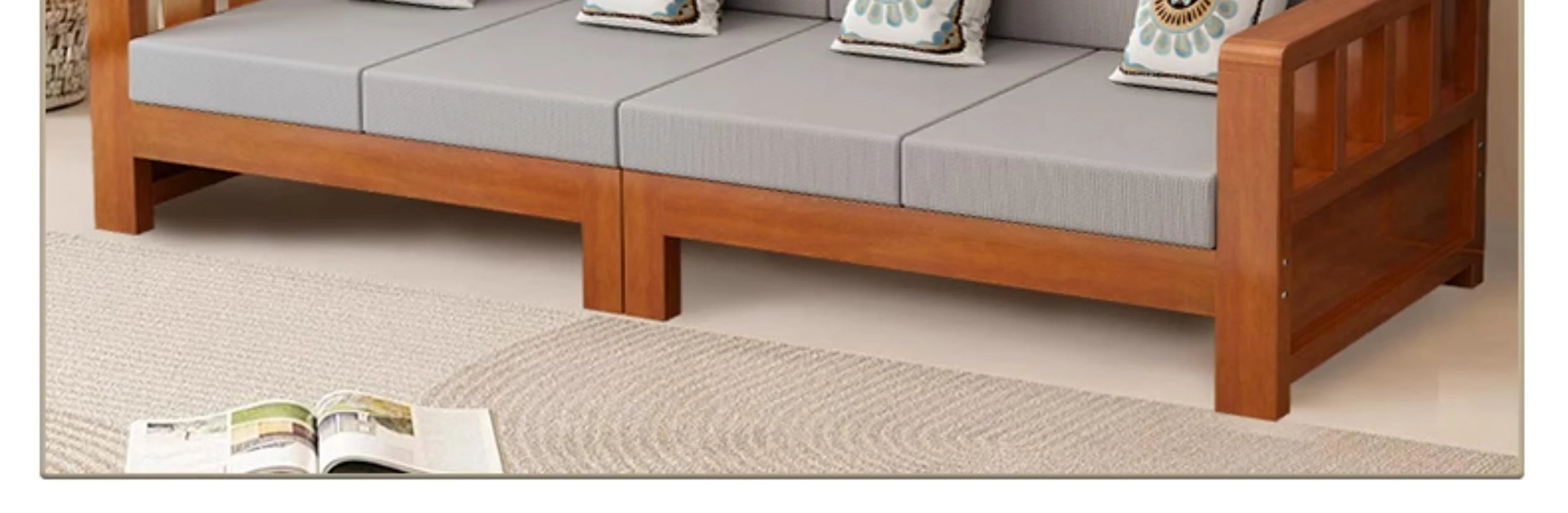 Single + Double + Three + Tea Table [Walnut Color] Cushion + Cushion + Pillow (All Solid Wood)
