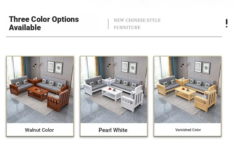 Single + Double + Three + Tea Table [Pearl White] Cushion + Cushion + Pillow (All Solid Wood)