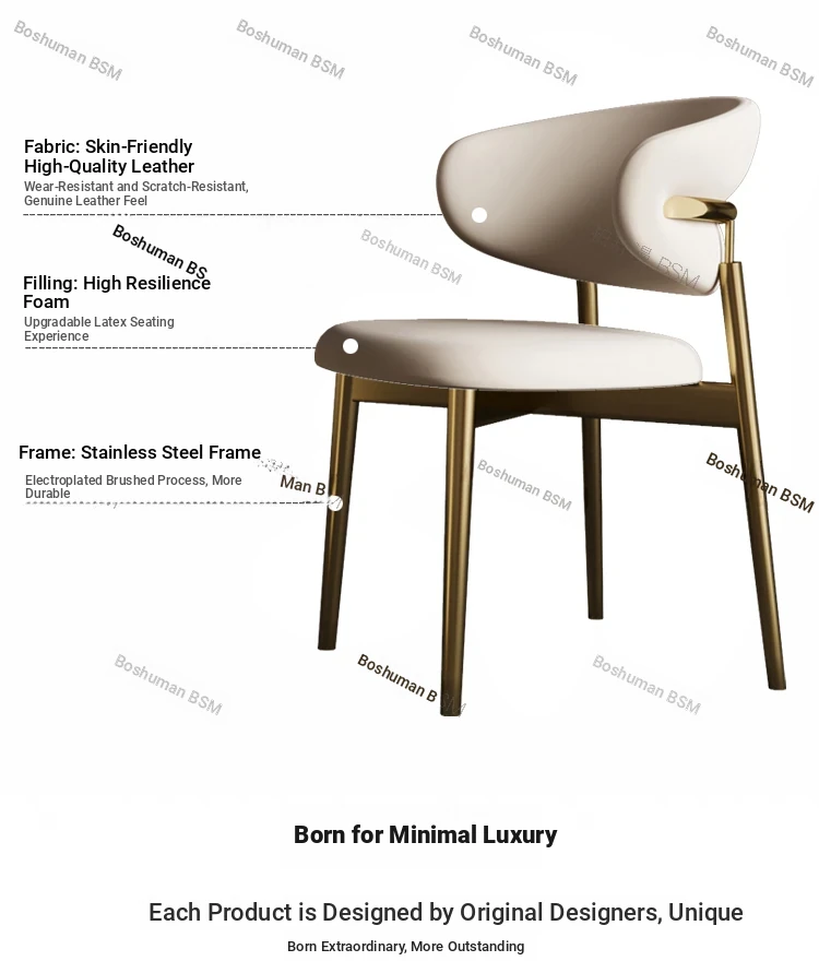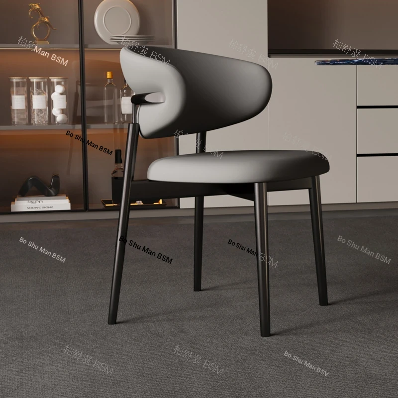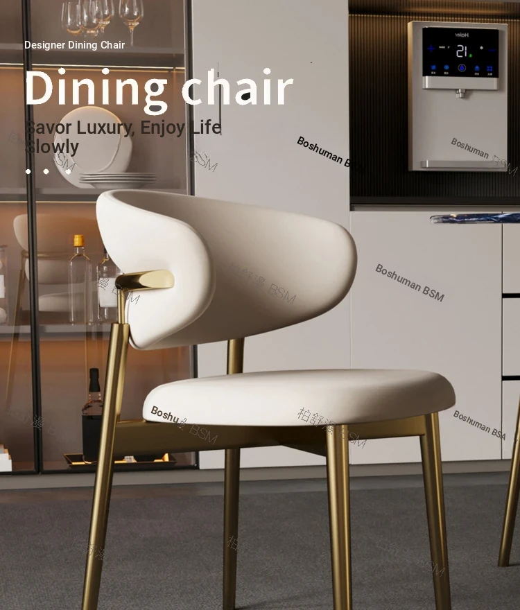 Italian Luxury High-End Villa Genuine Leather Dining Chair - Minimalist Design for Dining, Meetings, and Hotels - Stainless Steel Leisure Designer Chair