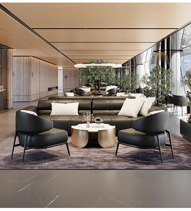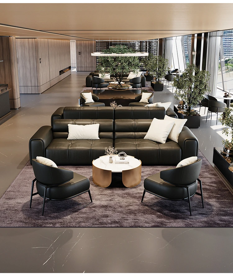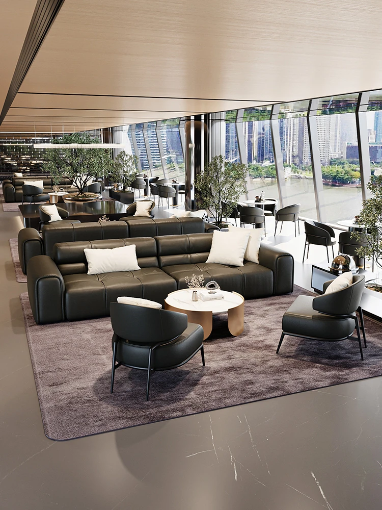 Italian Minimalist Luxury Faux Leather Sofa Set - Modern, Stylish Reception Seating for Hotels and Offices, Perfect for Meetings and Conversations