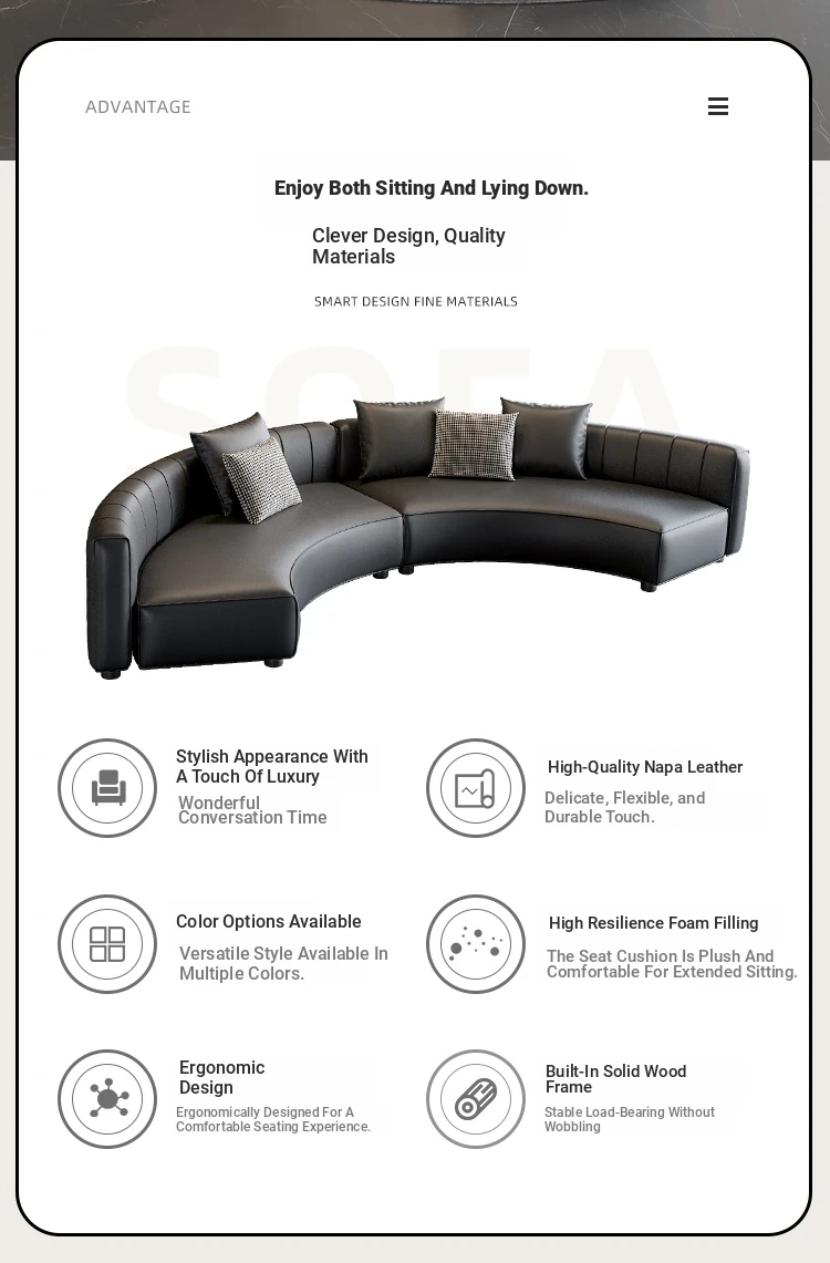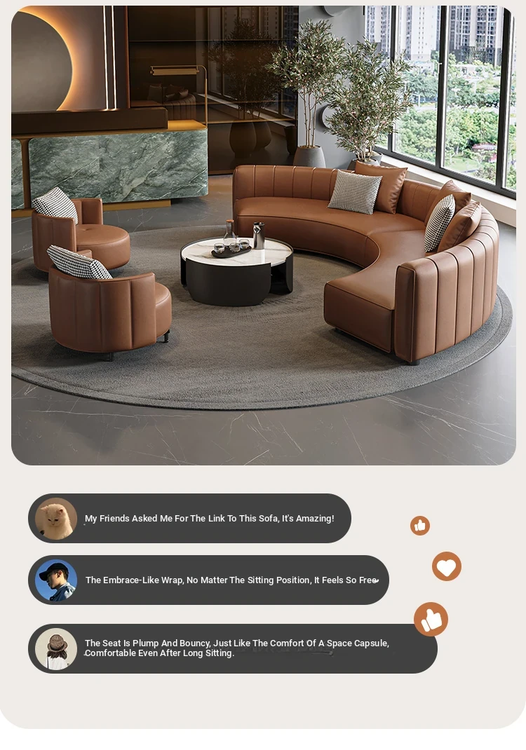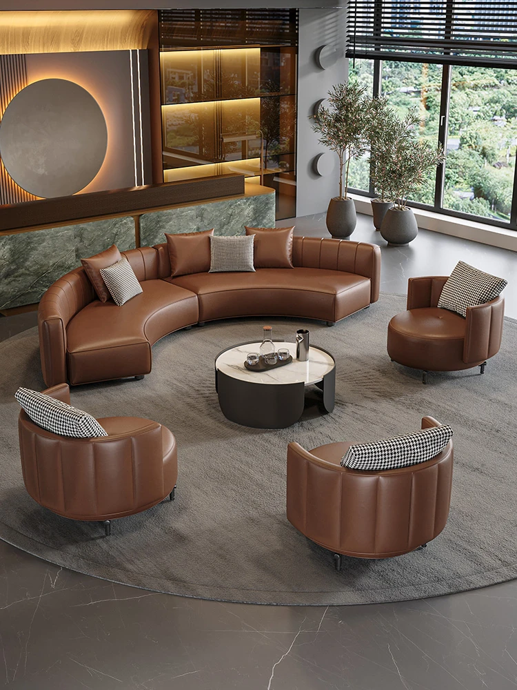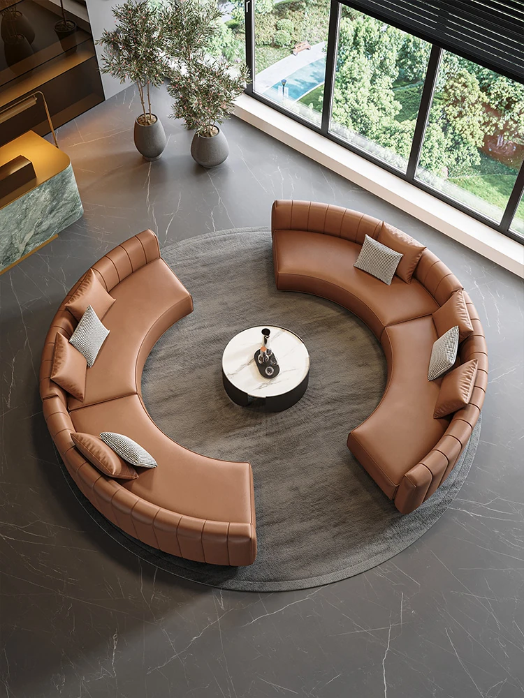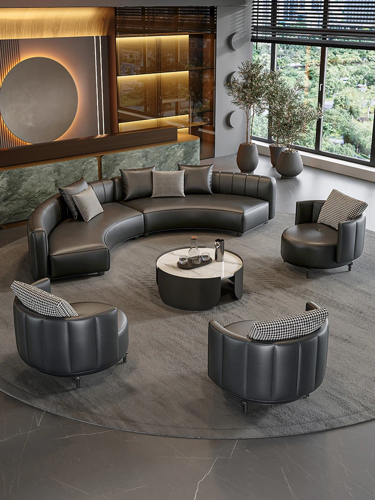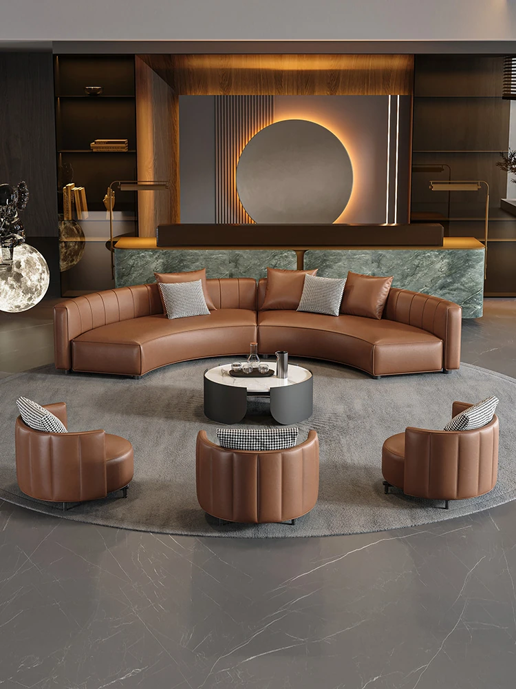 Italian-Style Curved Reception Sofa for Hotels - Elegant Half-Round Design for Lounge Areas, Perfect for Sales Offices and Private Meeting Spaces