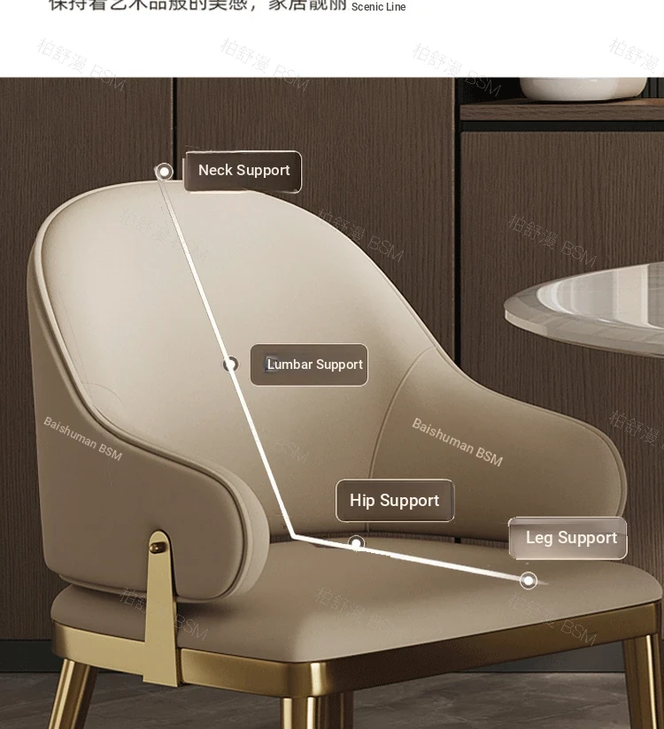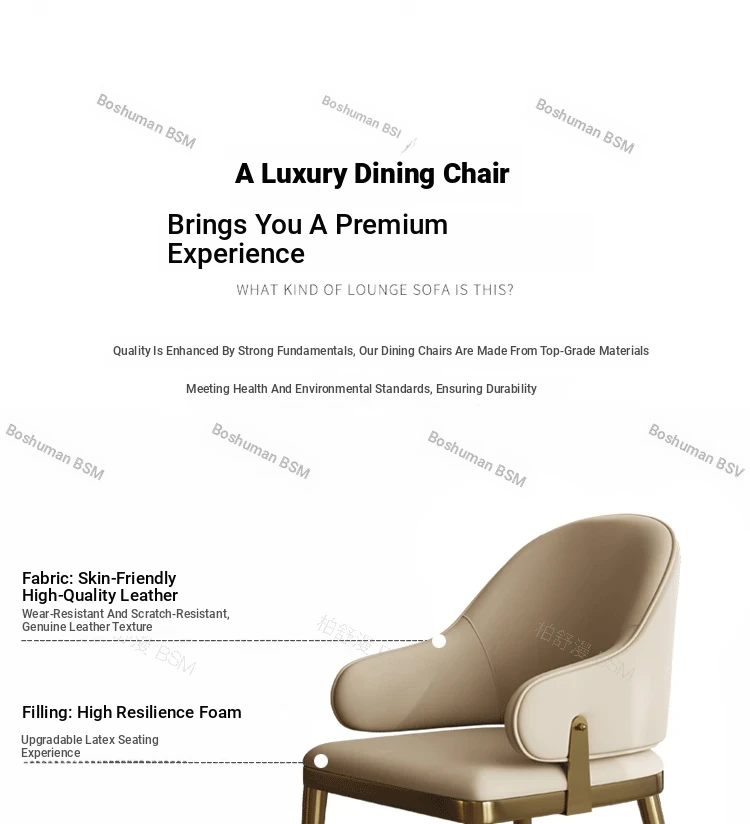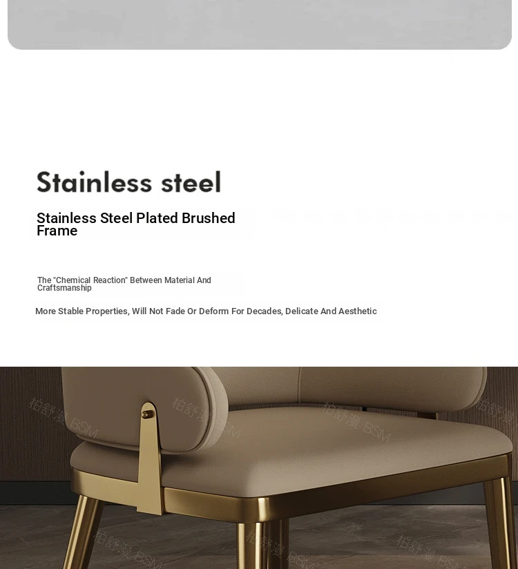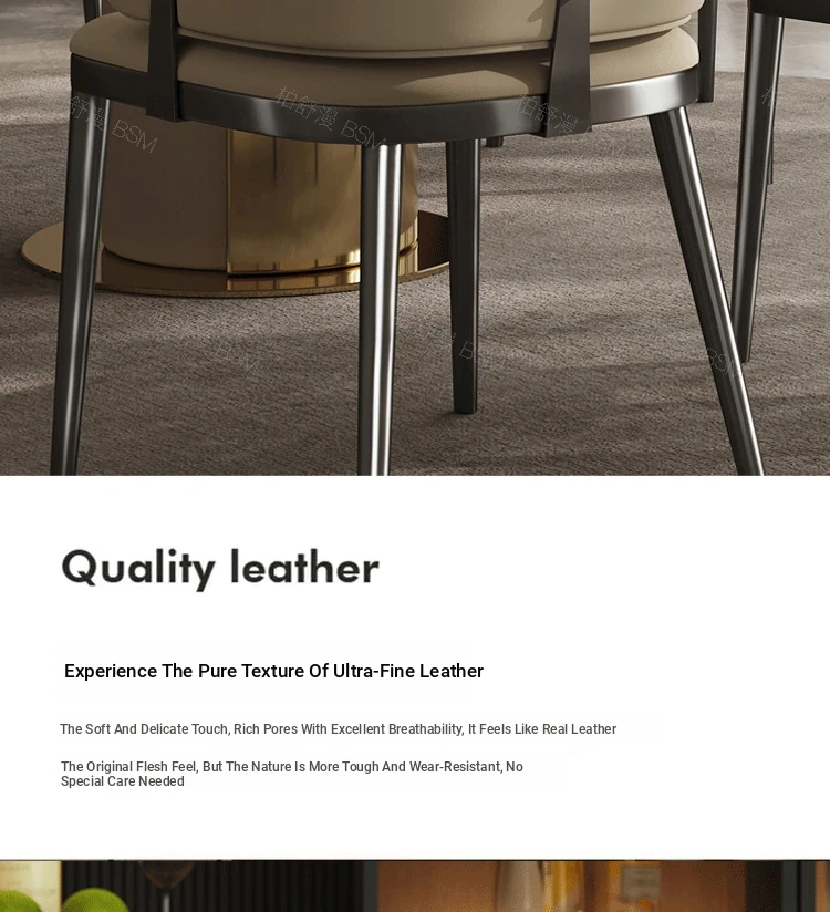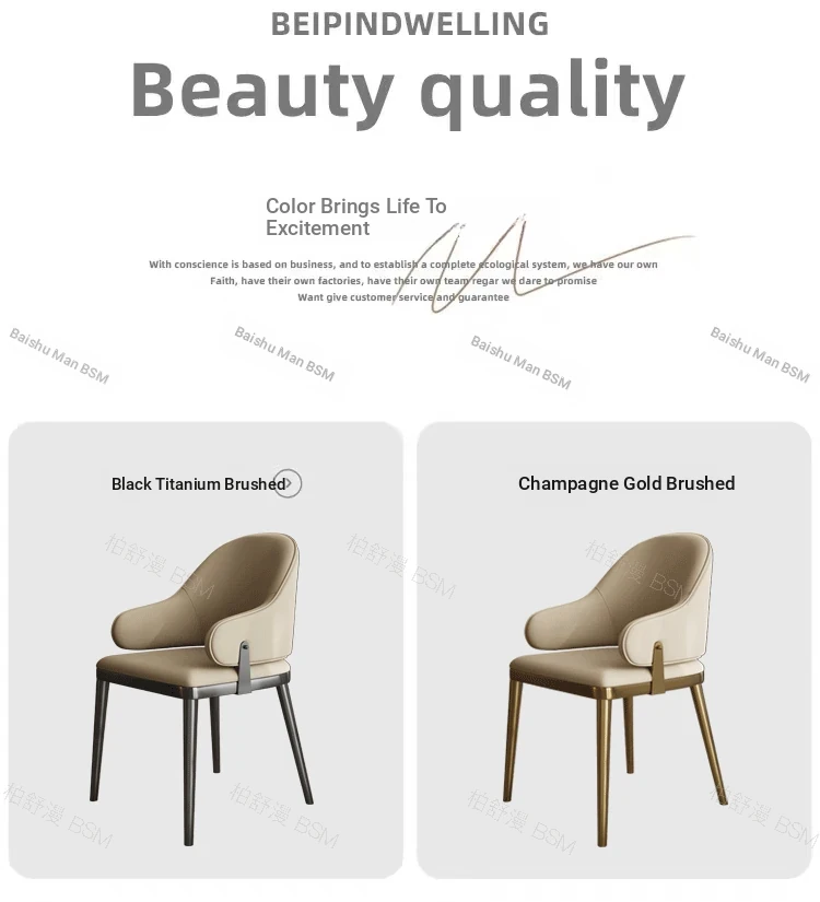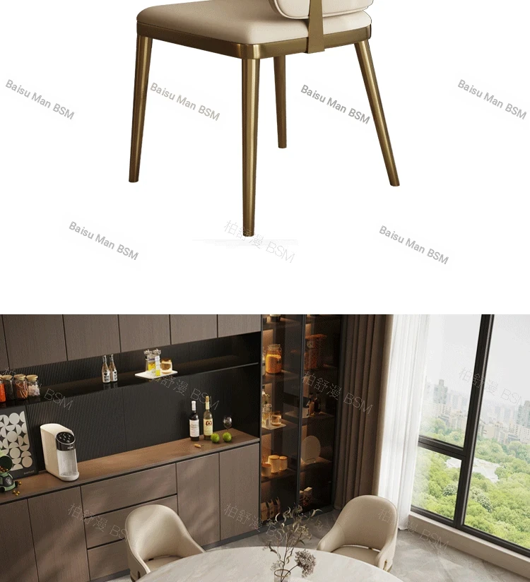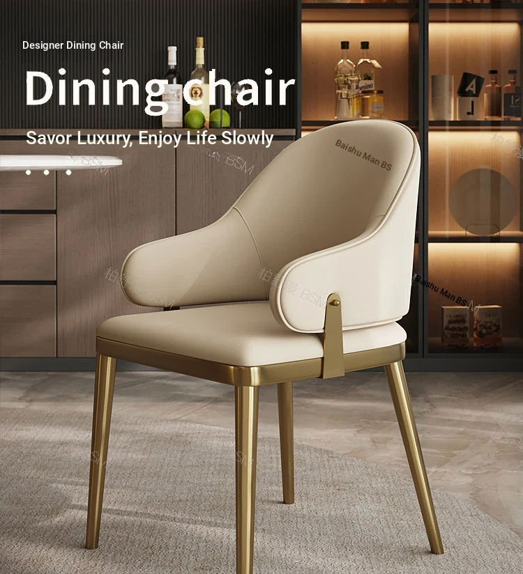 Luxurious Italian Style Genuine Leather Dining Chair with Stainless Steel Armrests – Perfect for Upscale Villas, Restaurants, and Designer Spaces. Elevate Your Dining Experience!
