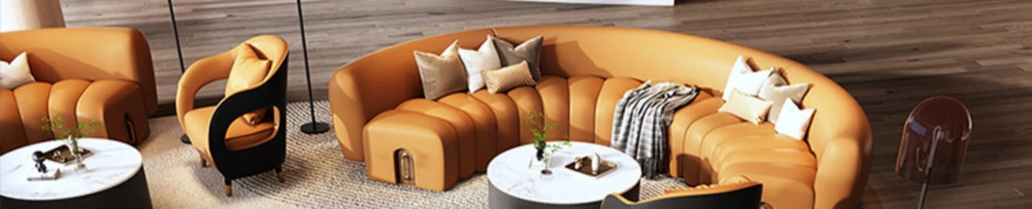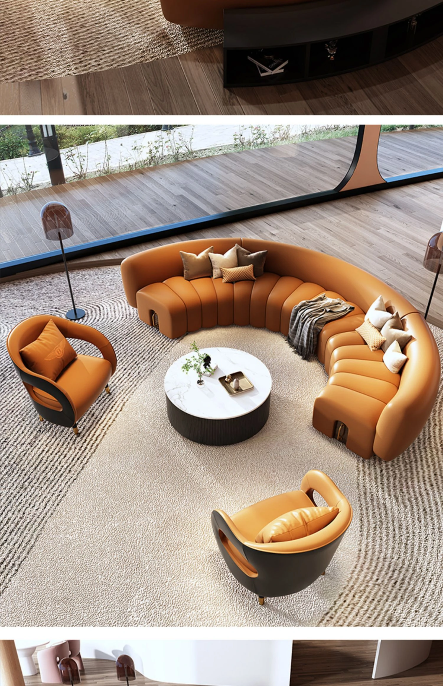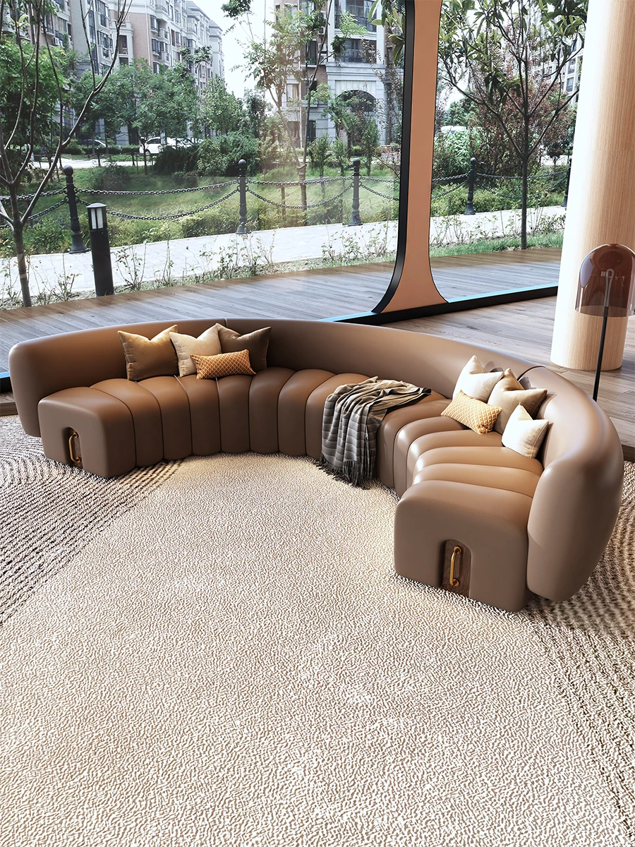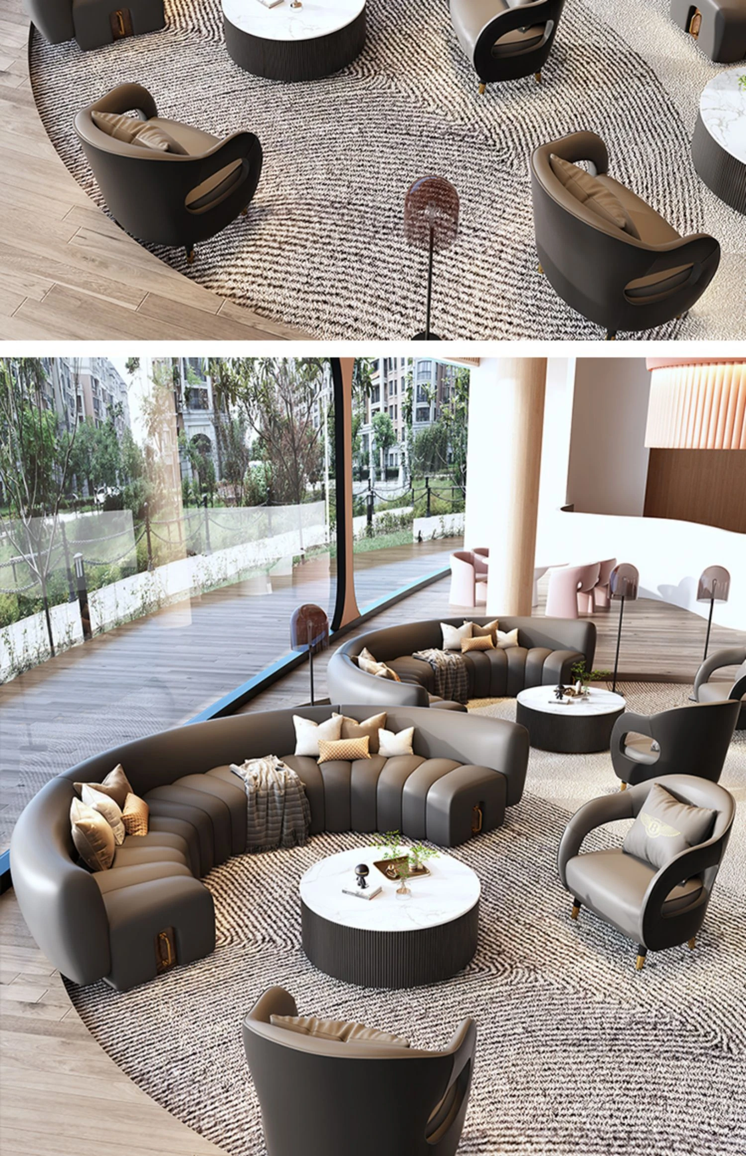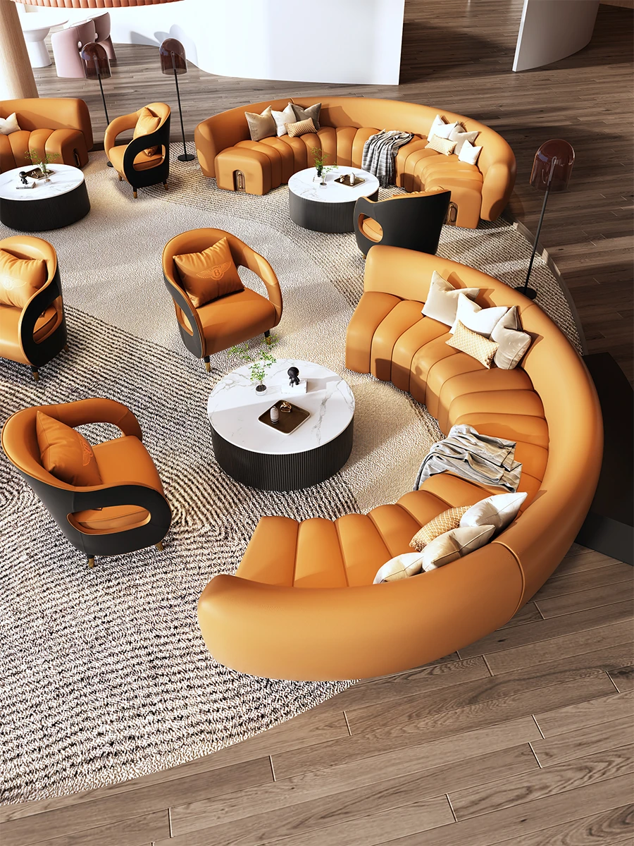Modern Minimalist Curved Corner Leather Sofa Set for Hotel Lobbies, Bars, and Lounges - Stylish Half-Round Booth and Reception Table Chairs Combo for Elegant Spaces