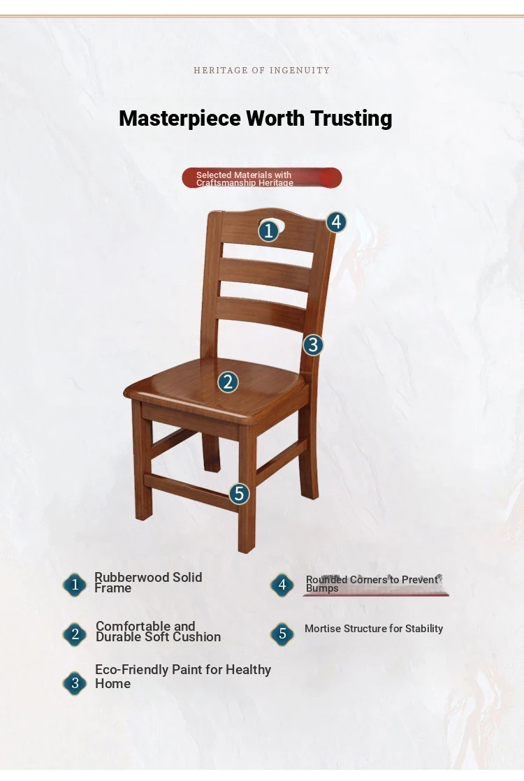 Modern Solid Wood Dining Chair with Mortise and Tenon Structure - No Assembly Required, Perfect for Home, Restaurants, and Hotels. Elegant Backrest Design for Ultimate Comfort.