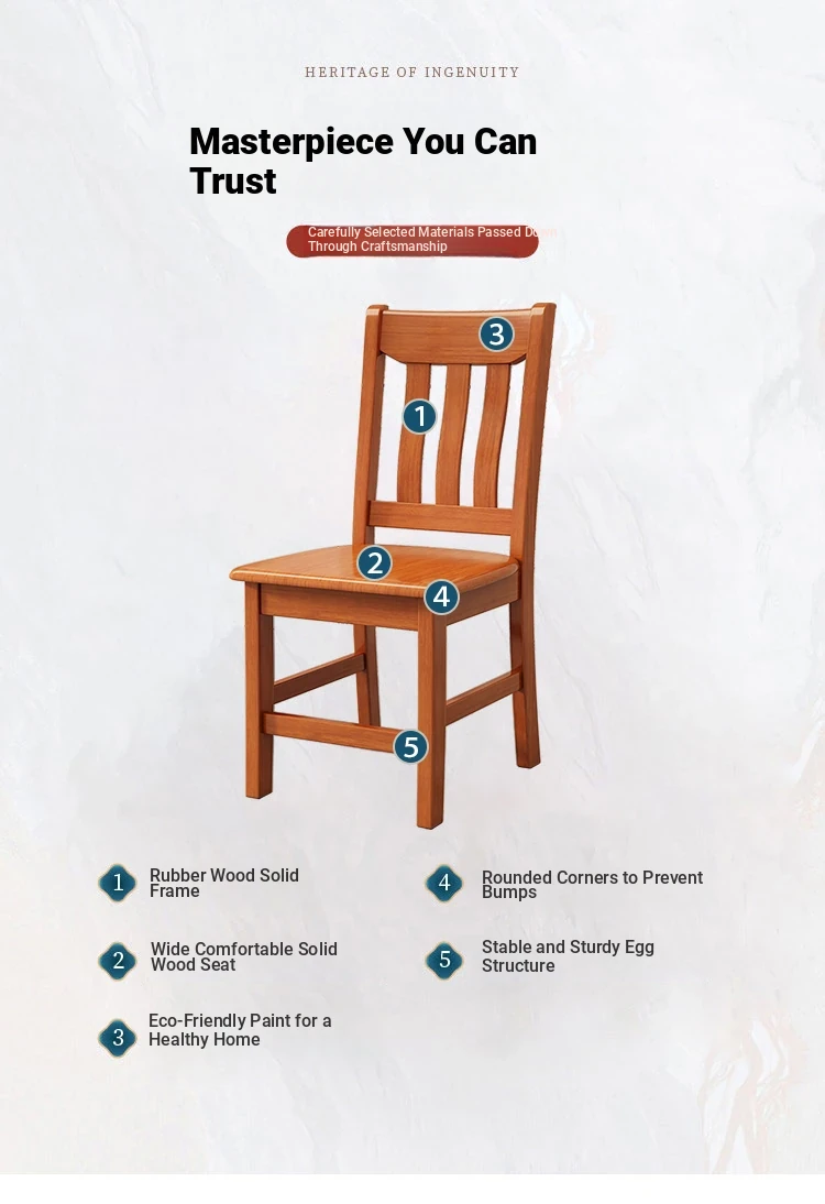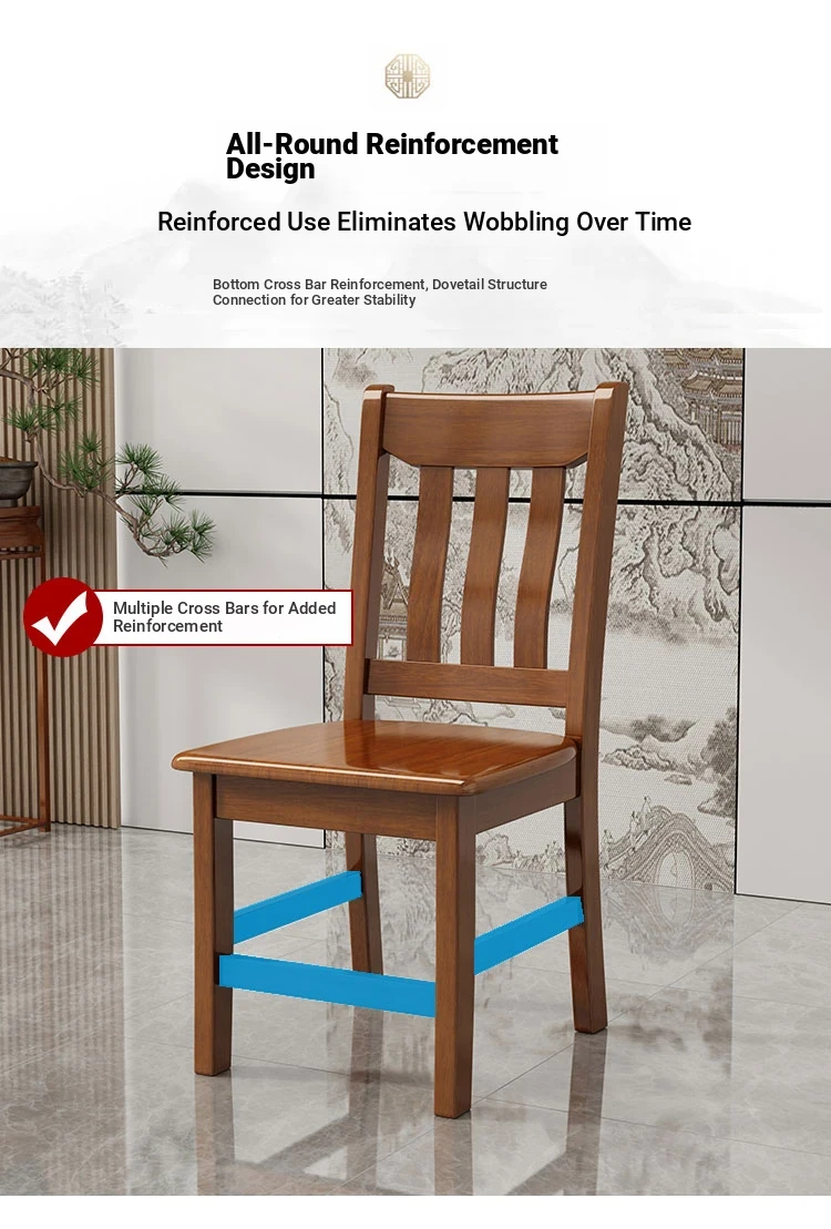 No-Installation Solid Wood Dining Chair - Stylish Chinese-Style Backrest Chair for Home, Restaurant, and Hotel Dining Tables - Perfect for Comfort and Elegance!