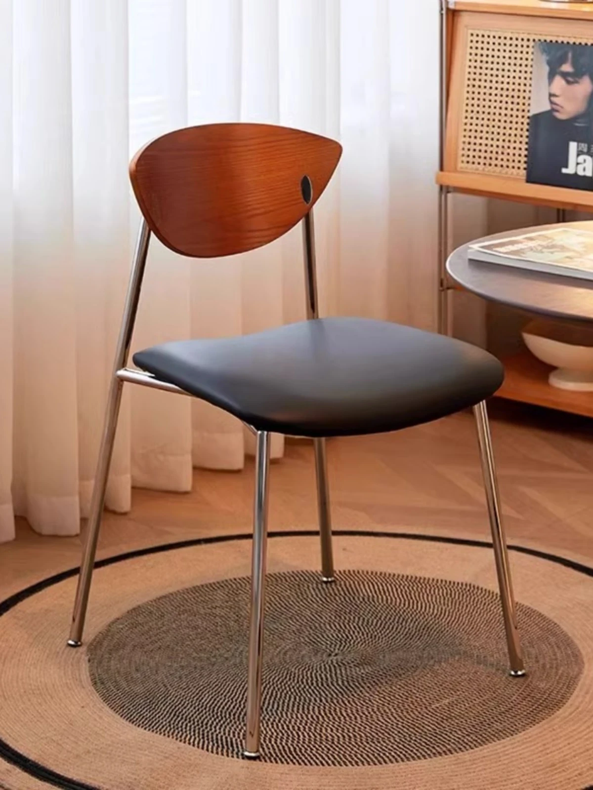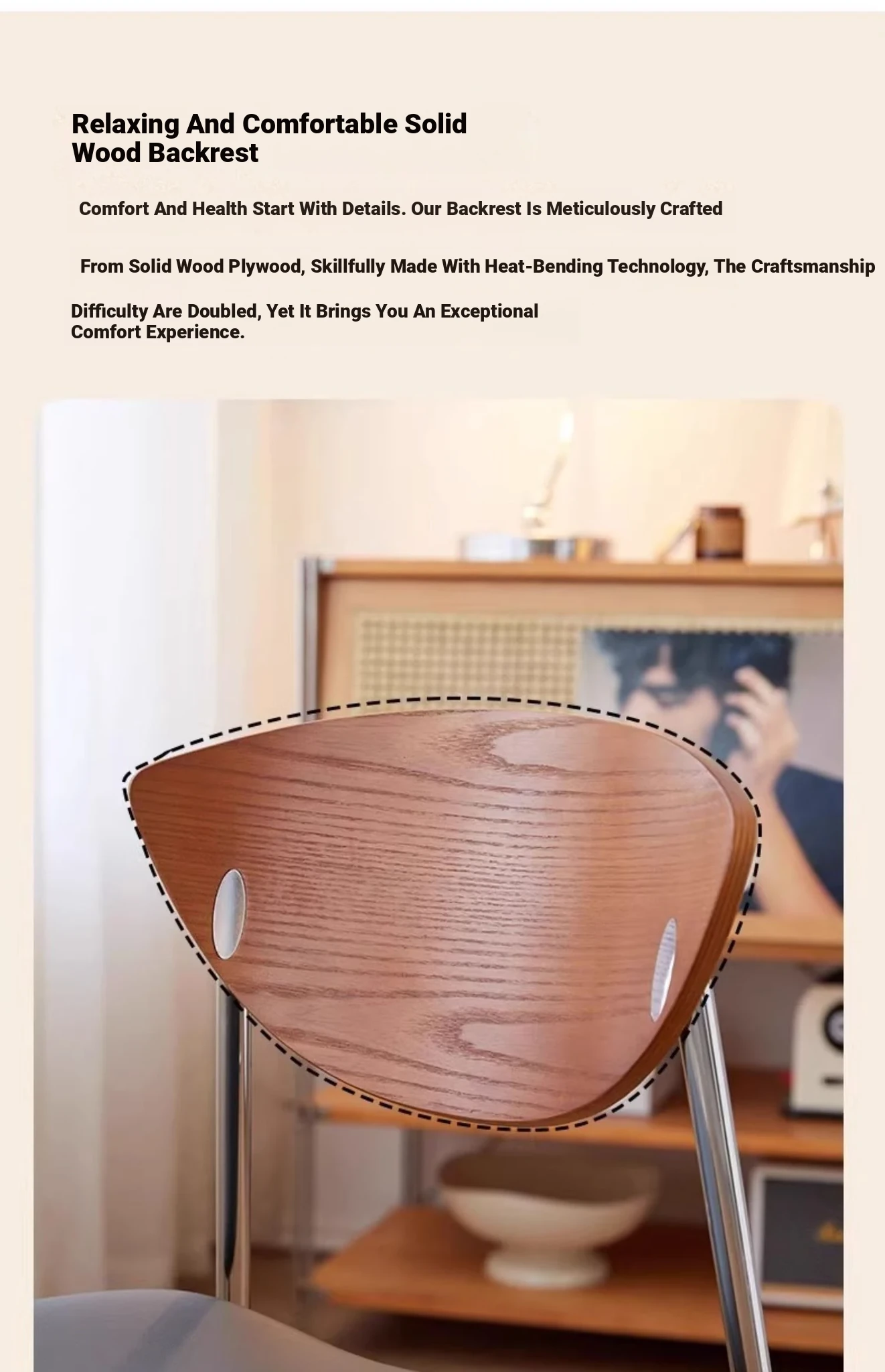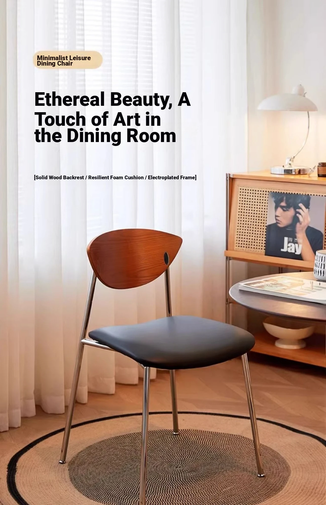 Nordic Solid Wood Designer Dining Chair - Minimalist Retro Style with Backrest for Living Room, Dining Table, and Iron Frame Desk Chair