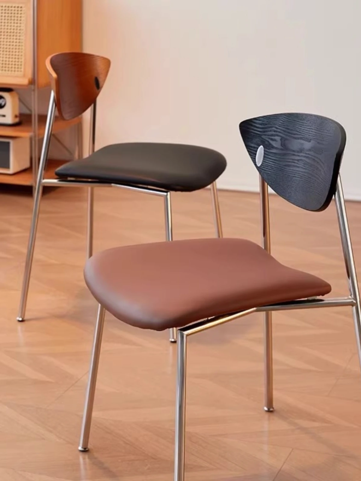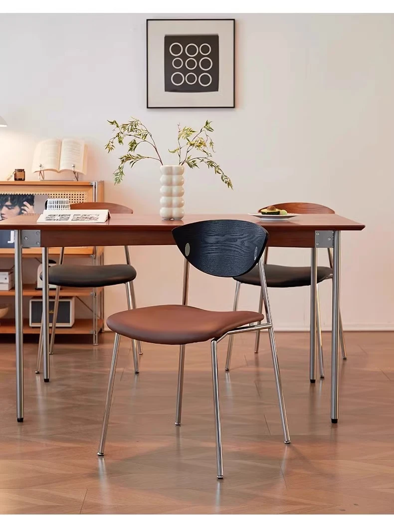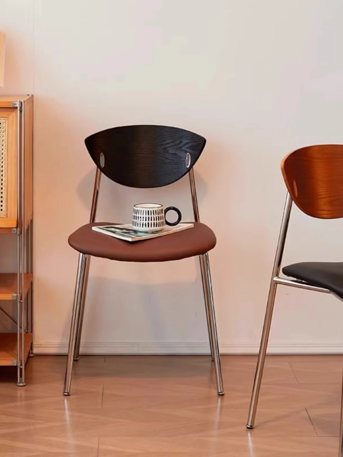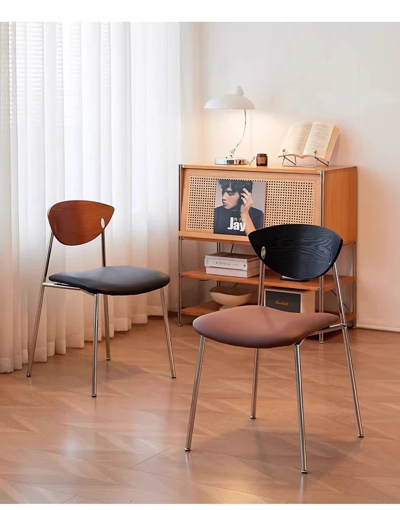 Nordic Solid Wood Designer Dining Chair - Minimalist Retro Style with Backrest for Living Room, Dining Table, and Iron Frame Desk Chair