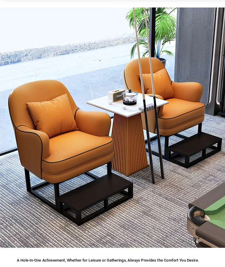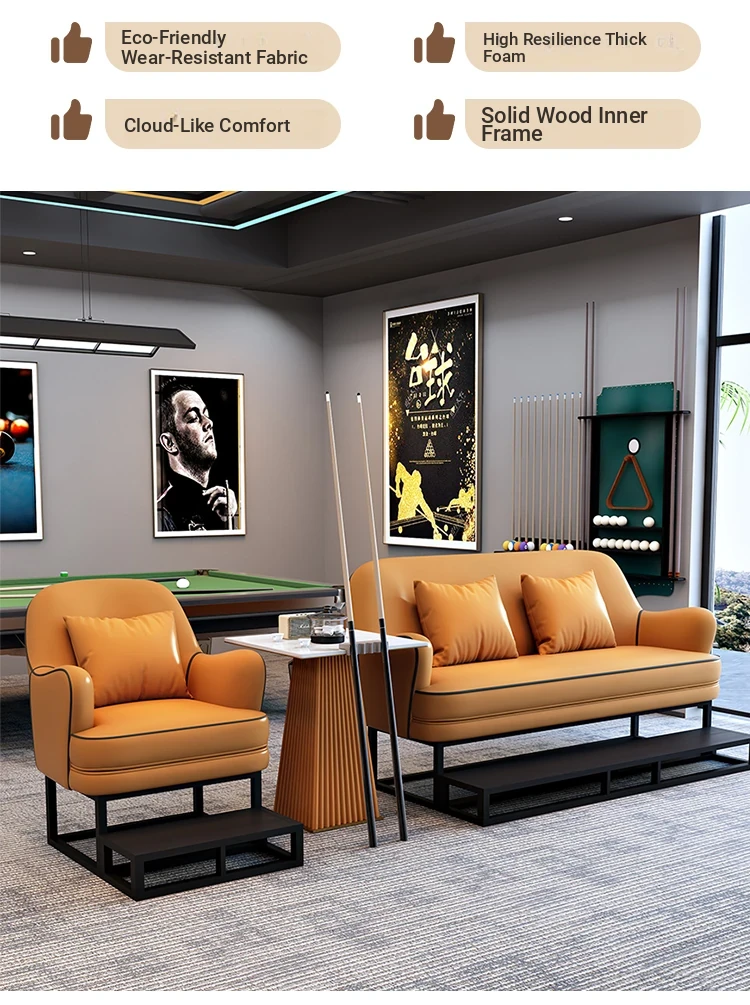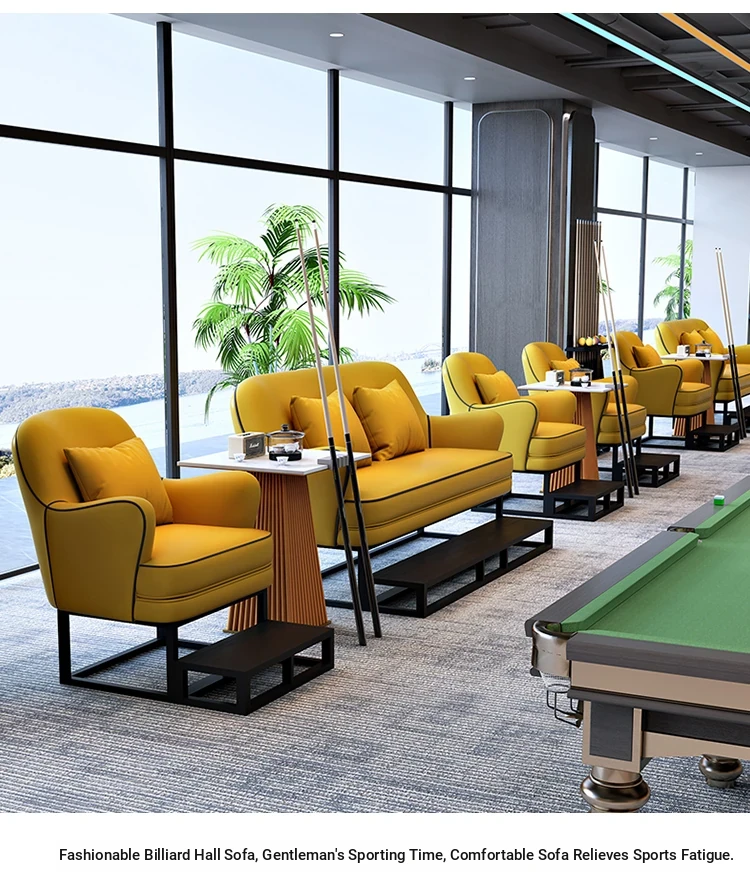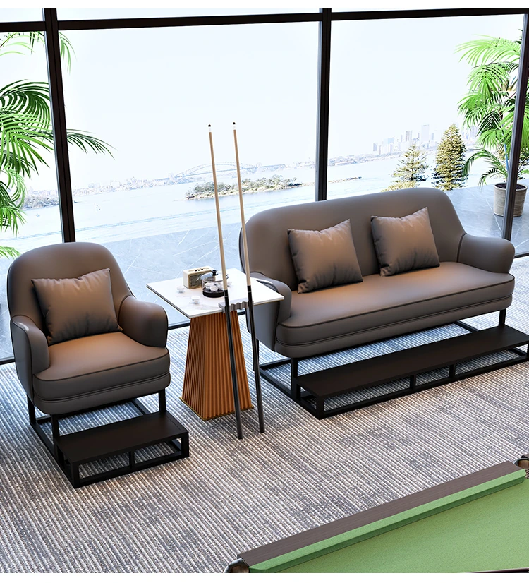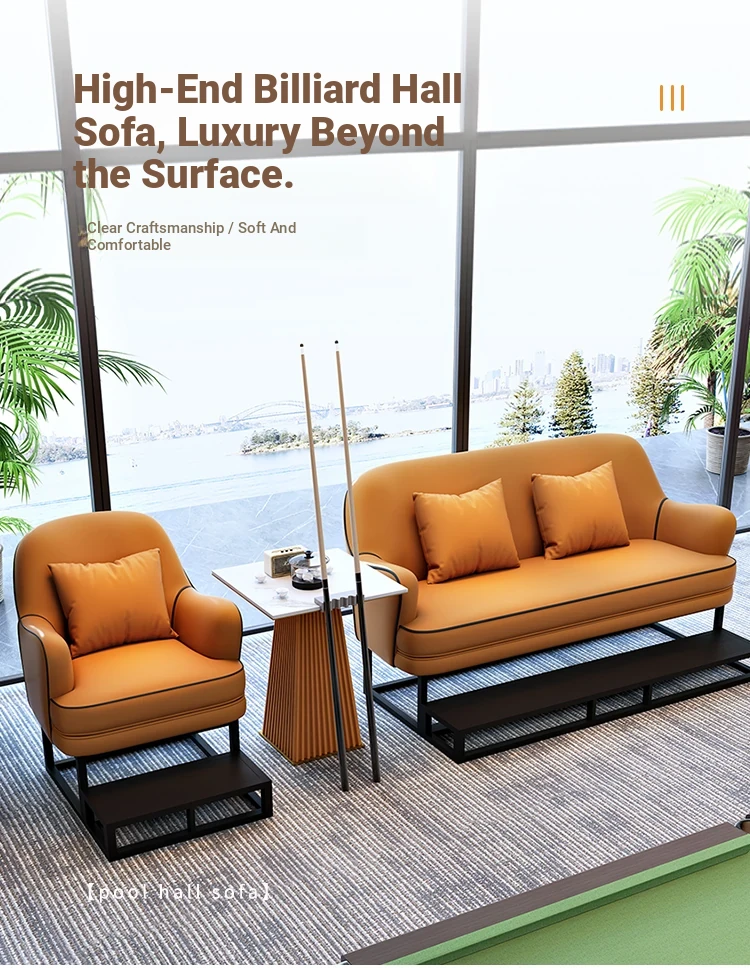 Premium Pool Hall Sofa Seating - Comfortable Viewing Chairs for Billiard Rooms, Ideal for Spectators in High-End Lounge Areas with Reception Tables and Sofas